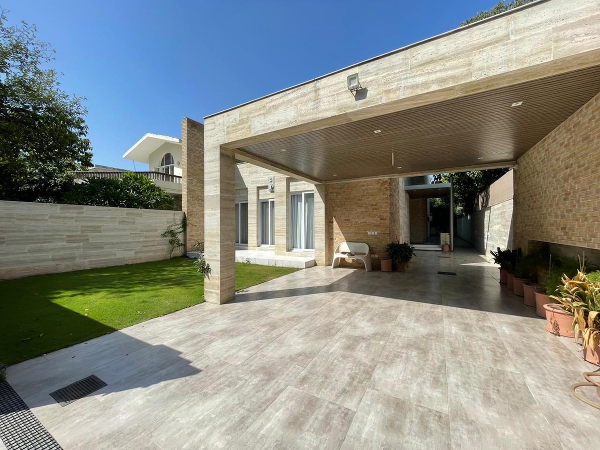 BIENVENIDO a A Luxury Residence, un elegante bungalow de nueva construcción ubicado en un vecindario tranquilo y prestigioso en la ubicación privilegiada de DHA Karachi, a solo 30 minutos del Aeropuerto Internacional Jinnah y a solo 10 minutos de Dolmen Mall Clifton y Sea View Beach. Este bungalow de dos pisos ofrece un alojamiento cómodo y elegante para un máximo de 8 huéspedes con 4 dormitorios en suite, cada uno equipado con comodidades modernas para garantizar una estancia lujosa e inolvidable. Solo aceptamos reservas de familias.