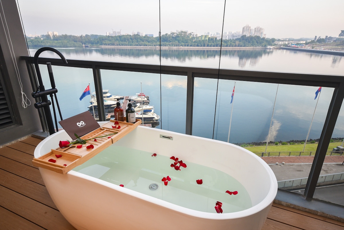 Suite con【 bañera y vistas al mar】【 Proyector de estilo balinés】