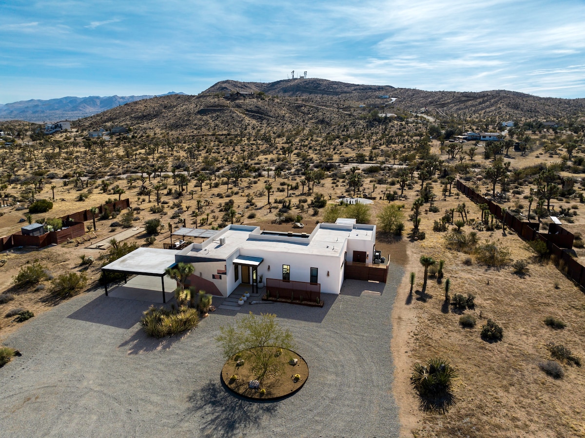 Sumérgete en esta lujosa casa de 3 dormitorios y 2 baños recién construida, con amplias ventanas que revelan los impresionantes paisajes, una piscina climatizada y un spa para disfrutar de baños bajo las estrellas, y un espacio dedicado al fitness. Relájate bajo cielos infinitos en 2 acres en tu propio oasis privado, perfecto para observar las estrellas y reunirse en el patio. Despiértate con impresionantes amaneceres, explora las maravillas de otro mundo de Joshua Tree y vuelve para darte un baño rejuvenecedor en tu refugio en el desierto.