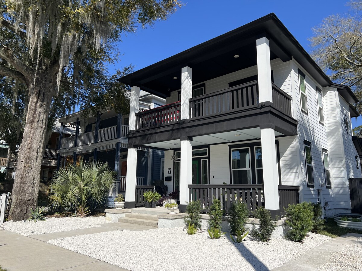 ¡Escápate a esta casa de huéspedes de lujo española inspirada en la cultura del día de los muertos en la zona de vida nocturna eléctrica más deseable de Jacksonville! Todo este apartamento de 2/1 arriba no tiene espacio compartido en el interior. Camina hasta la acción en King ST. con restaurantes, bares, barbería, desayuno, café, tiendas de antigüedades, yoga *10 minutos al estadio *Camas MUY cómodas * Bañera de hidromasaje con chorros Televisión SmaRt de 50 pulgadas con wifi café W/D Utensilios de cocina *porche exterior para disfrutar o fumar si lo deseas