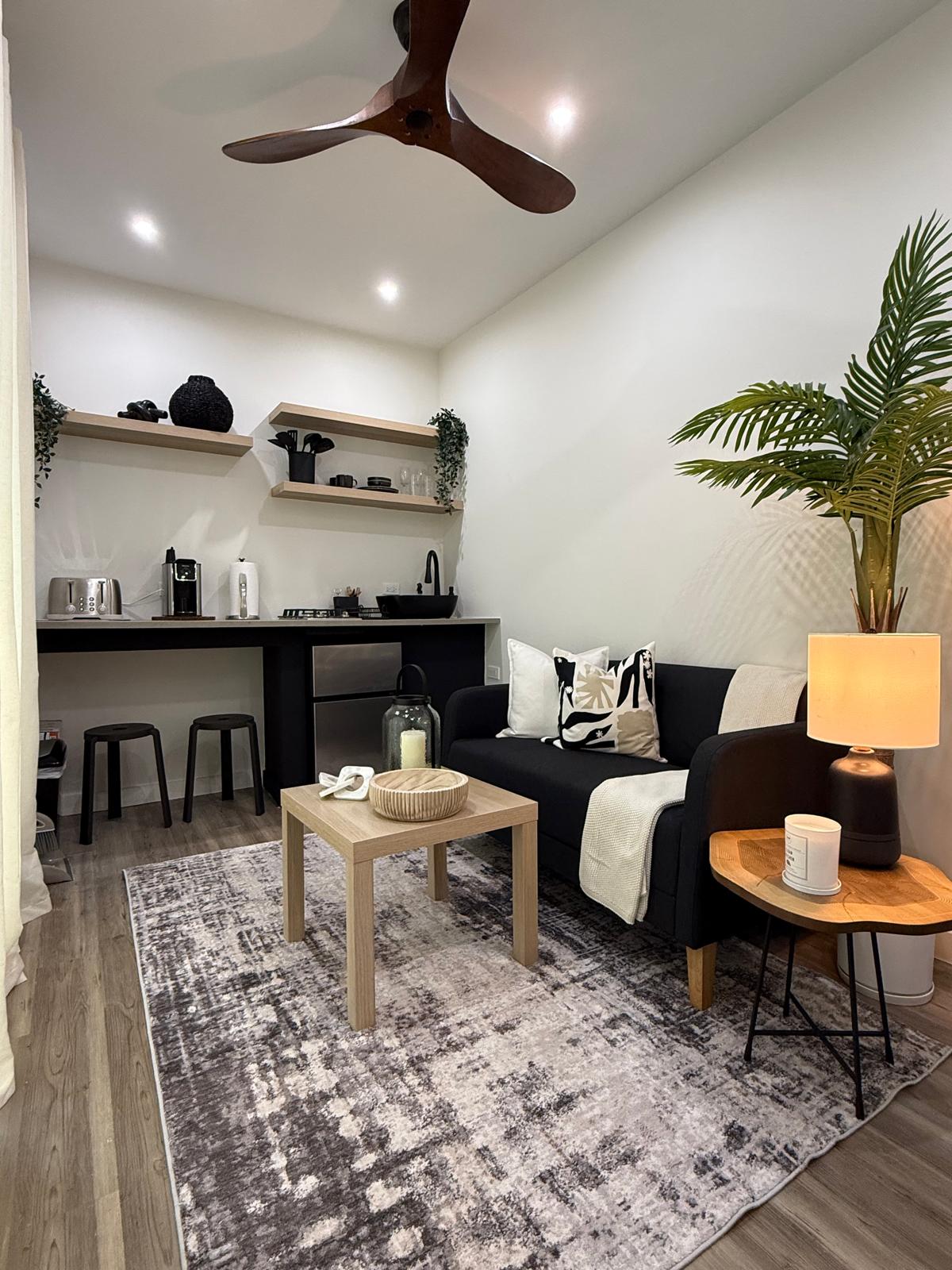 Este estudio costero se encuentra frente a una playa aislada de arena negra con amaneceres y atardeceres inolvidables. Disfruta de una cama tamaño king con un lujoso colchón, aire acondicionado y una cocina americana completa: todo lo que necesitas para una escapada relajada a la playa. Situado en la costa norte de Puerto Rico, en un barrio seguro, estarás a pocos minutos de restaurantes locales, La Cueva del Indio, rutas de senderismo y los outlets de Barceloneta Premium.