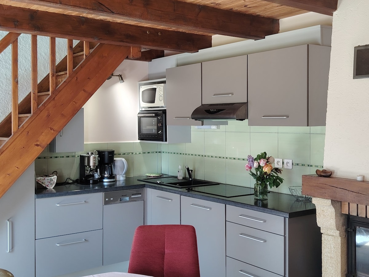 Cette grange spacieuse, rénovée avec goût vous enchantera de par son emplacement en pleine nature, dans un cadre préservé. La terrasse de 28m² offre un panorama unique sur la forêt, on y est bercé par le son du ruisseau en contre bas. Ici pas de TV mais des livres. Chaque détails a été minutieusement pensé, tout a été chiné. Ce logement de 112 m², tout équipé, avec 2 chambres doubles, une grande pièce à vivre avec insert, un beau jardin, est un lieu ou le temps est suspendu. Aucun vis à vis.