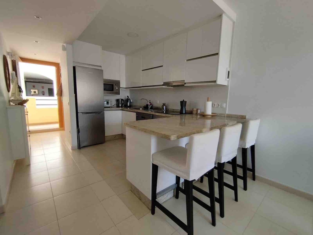 Apartamento bajo con porche en primera línea de playa en Puerto Rey, Almeria. Dos habitaciones, salón comedor, cocina con barra, baño, lavadero y trastero. Aire acondicionado, sofá cama, wifi, smart TV de 55" (Netflix y Amaon Prime) lavadora y secadora. La cocina está equipada con microondas, lavavajillas y menaje completo. La habitación principal consta de cama de matrimonio de 160 y la secundaria de dos camas de 90, ambas con armarios. Parcela de parking privado exterior. Piscina comunitaria.