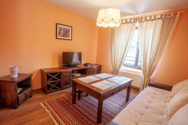 Cosy apartment located in the Grand Monastery holiday complex in Pamporovo. The apartment is situated right by the Studenets ski slopes. The apartment has a bedroom and a separate living room with a sofa bed. The living room is set around the fireplace and includes a well-equipped kitchen.