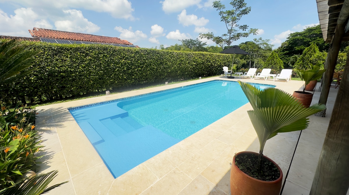 Villa Kiara es el hogar perfecto para relajarse y disfrutar. Ubicado dentro del exclusivo condominio Fincas Panaca, junto al Parque Panaca, a 7 km de Quimbaya y a 20 km del Parque Nacional del Café. Cuenta con un clima perfecto, una piscina privada con una vista natural y está cerca de todas las atracciones turísticas de la hermosa región cafetera. Este alojamiento es ideal para familias o grupos de amigos. También cuenta con Internet Starlink las 24 horas, Direct TV y estacionamiento privado en el lugar.
