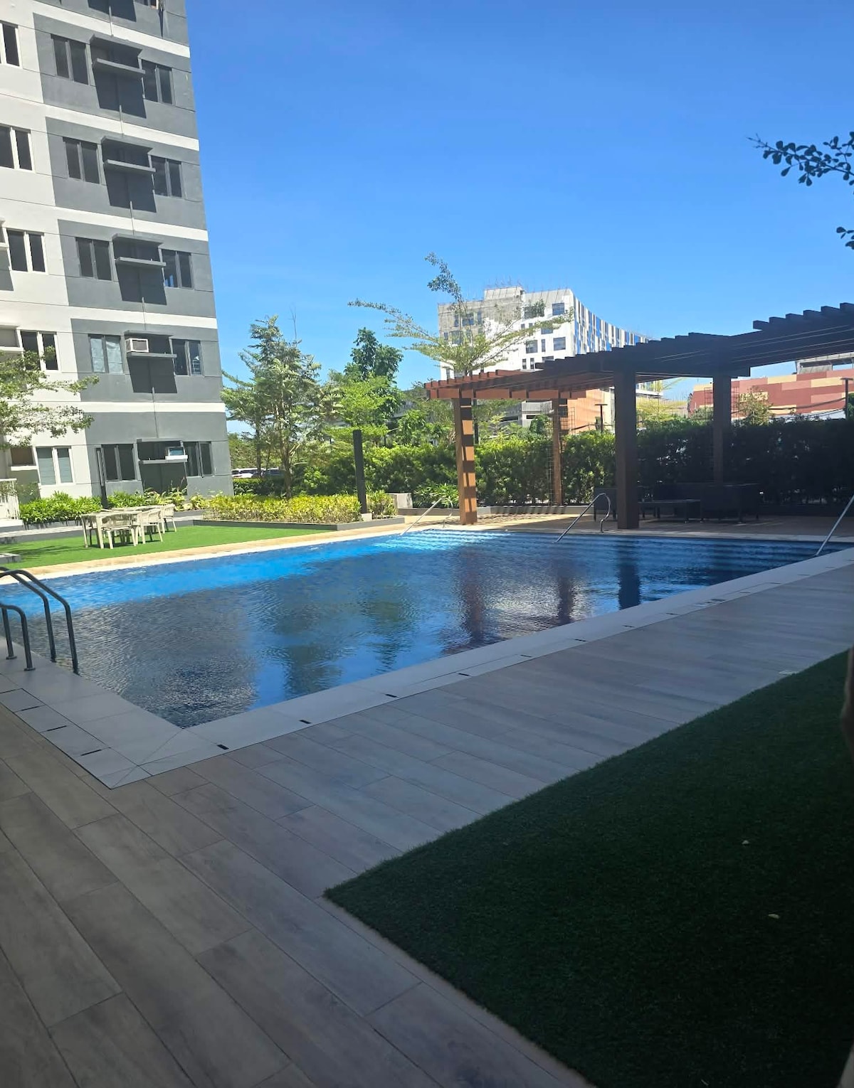 One Regis: tiene capacidad para 6 personas (pueden aplicarse cargos adicionales). Amplio apartamento minimalista de 1 dormitorio con vistas a la piscina. Totalmente amueblada y diseñada para la comodidad, esta unidad. Disfruta de aire acondicionado, wifi de alta velocidad, una cocina equipada y una ducha moderna en un edificio seguro con seguridad 24/7. Perfecto para parejas, viajeros solitarios, familias o profesionales. Convenientemente ubicado cerca de centros comerciales, restaurantes, cafeterías y centros de transporte, ¡tu elegante refugio urbano te espera!