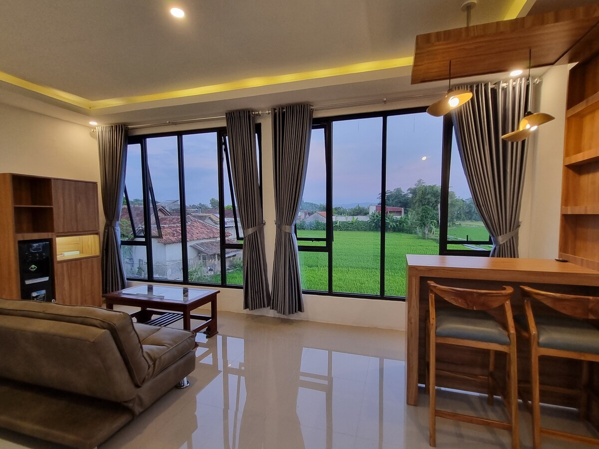 Olvídate de todas tus preocupaciones en este lugar tranquilo. El concepto de una villa con una naturaleza hermosa y unas vistas impresionantes, además de una arquitectura diseñada con un toque rústico y decoraciones que reflejan la sabiduría local. Tenemos 6 villas en la zona, esta villa está rodeada de 10 hectáreas de vistas al campo de arroz. Puedes sentir la amplitud del campo de arroz verde, ver al granjero haciendo su trabajo, ver a algún animal del pueblo si tienes suerte.