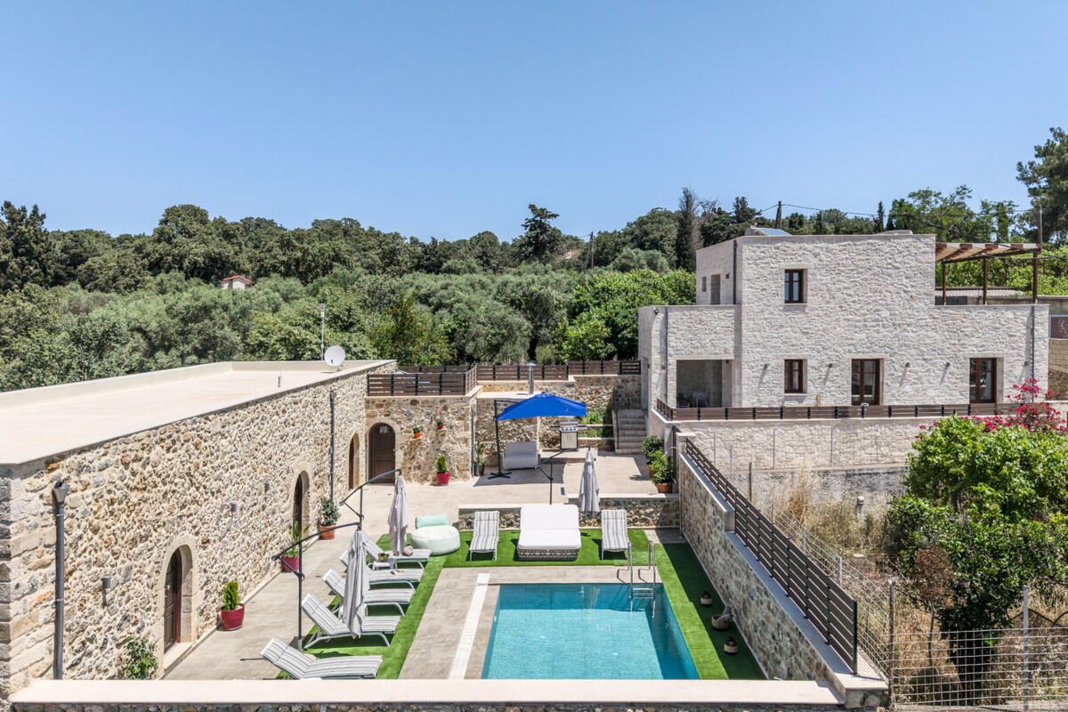 Sumérgete en el verano cretense en esta encantadora villa. Una vez abandonada casa familiar de 1905 se ha transformado completamente en el '23 en una impresionante villa construida en piedra con todas las comodidades que busca el huésped moderno. ¡Piscina privada, bañera de hidromasaje,barbacoa y parque infantil, tiene todo lo que se necesita para una experiencia lujosa pero auténtica! Su color de terracota y su estética isleña se mezclan perfectamente con la rica naturaleza de Creta, dando la ilusión que está emergiendo de la tierra,ofreciendo vistas a las montañas e impresionantes puestas de sol doradas.