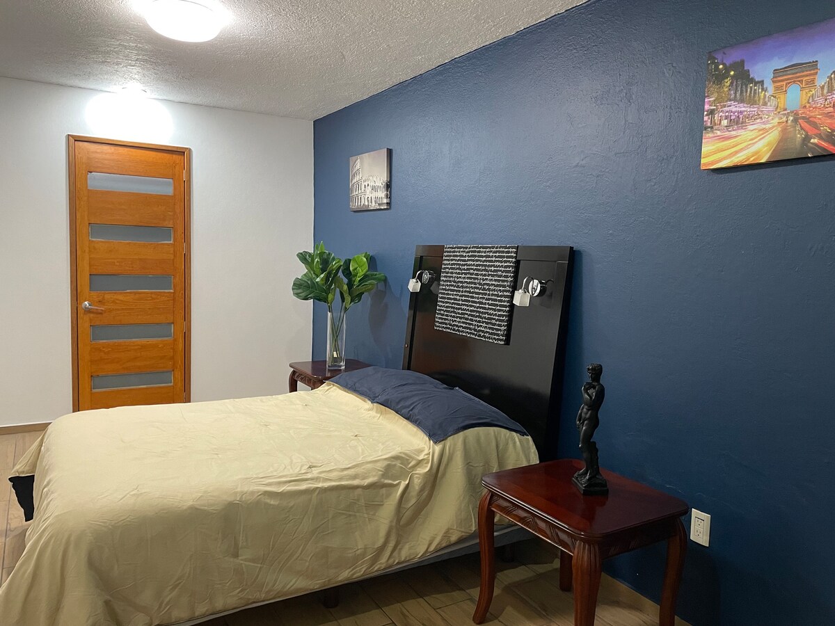 ¡Mini departamento nuevo, moderno y totalmente equipado! Disfruta de una estancia cómoda en este departamento recién estrenado. Perfecto para viajeros que buscan un lugar acogedor con todas las comodidades incluidas, ideal para viajes de trabajo o estancias de varios días. Cuenta con: 1 Cama matrimonial y un sofá cama Cocineta equipada Baño privado con agua caliente WiFi de alta velocidad y TV Excelente ubicación