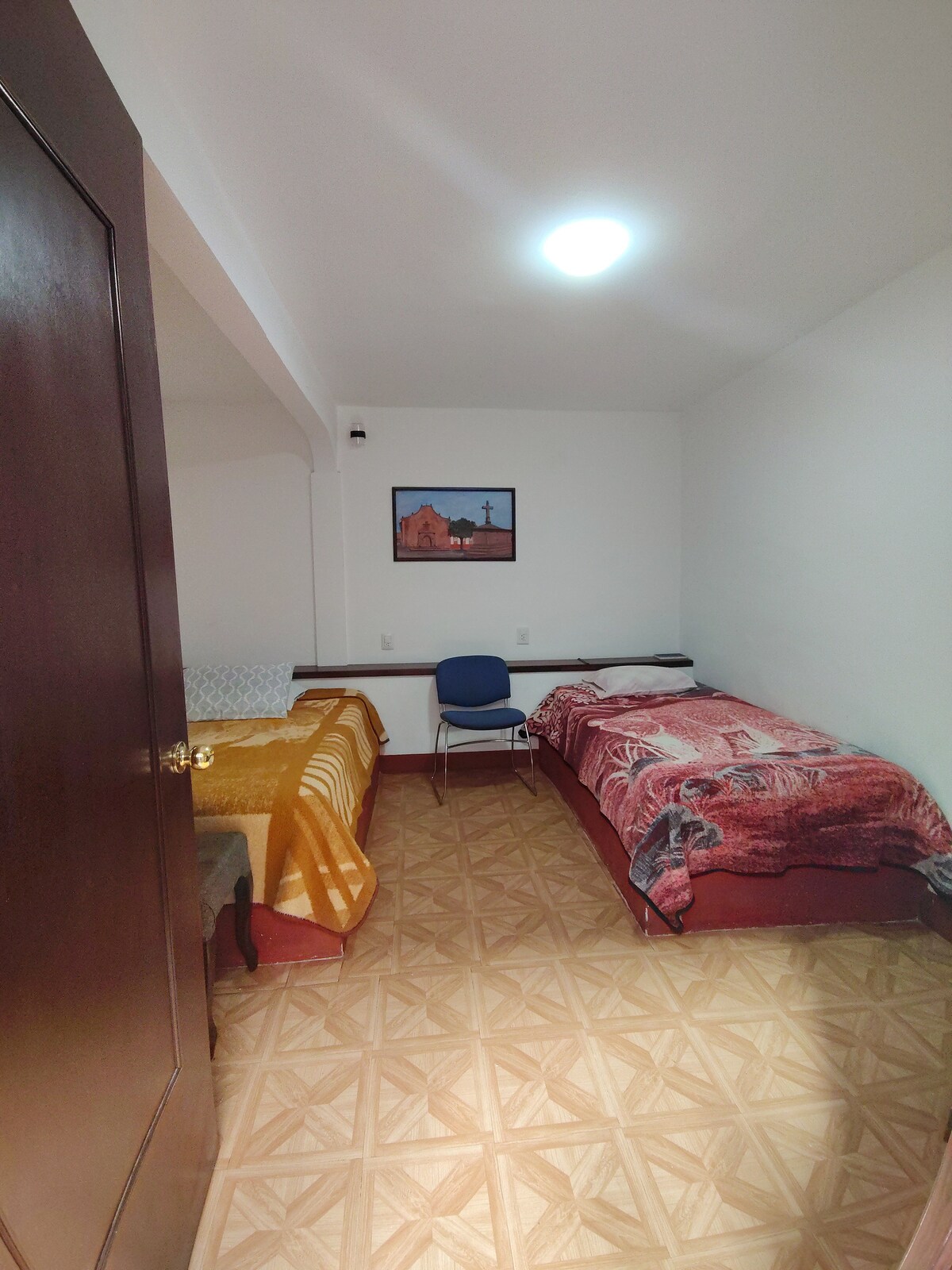Disfruta de la sencillez de este alojamiento tranquilo y céntrico. Ubicado en la calle principal de este hermoso pueblo mágico a unos pasos del monumento a la guitarra y rodeado de restaurantes, farmacias y tiendas. El departamento está equipado con todo lo necesario para disfrutar una libre y cómoda estancia, cuenta con: cocina, sala, baño con agua caliente, dos habitaciones una con una cama matrimonial y otra con una cama matrimonial y una cama individual.
