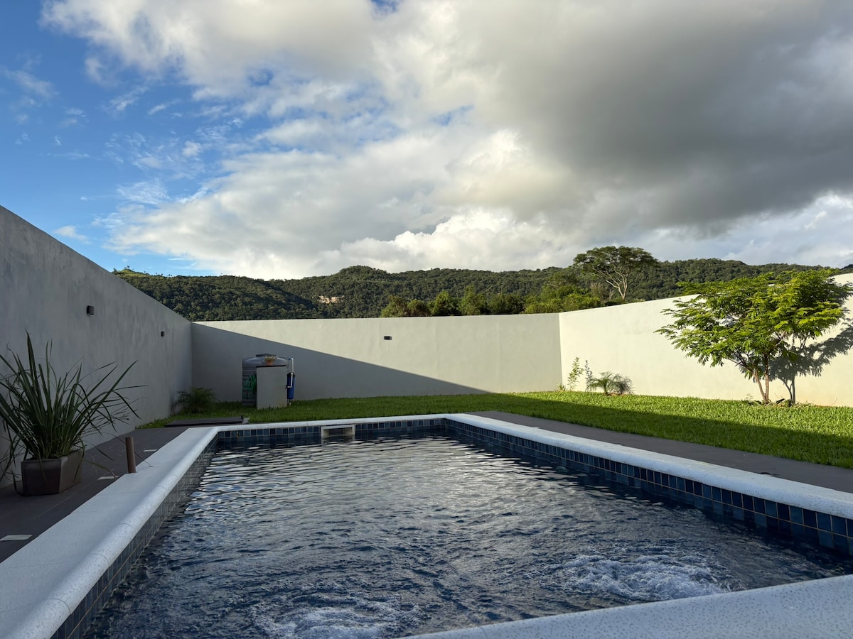 Cabaña amplia con piscina, ideal para grupos