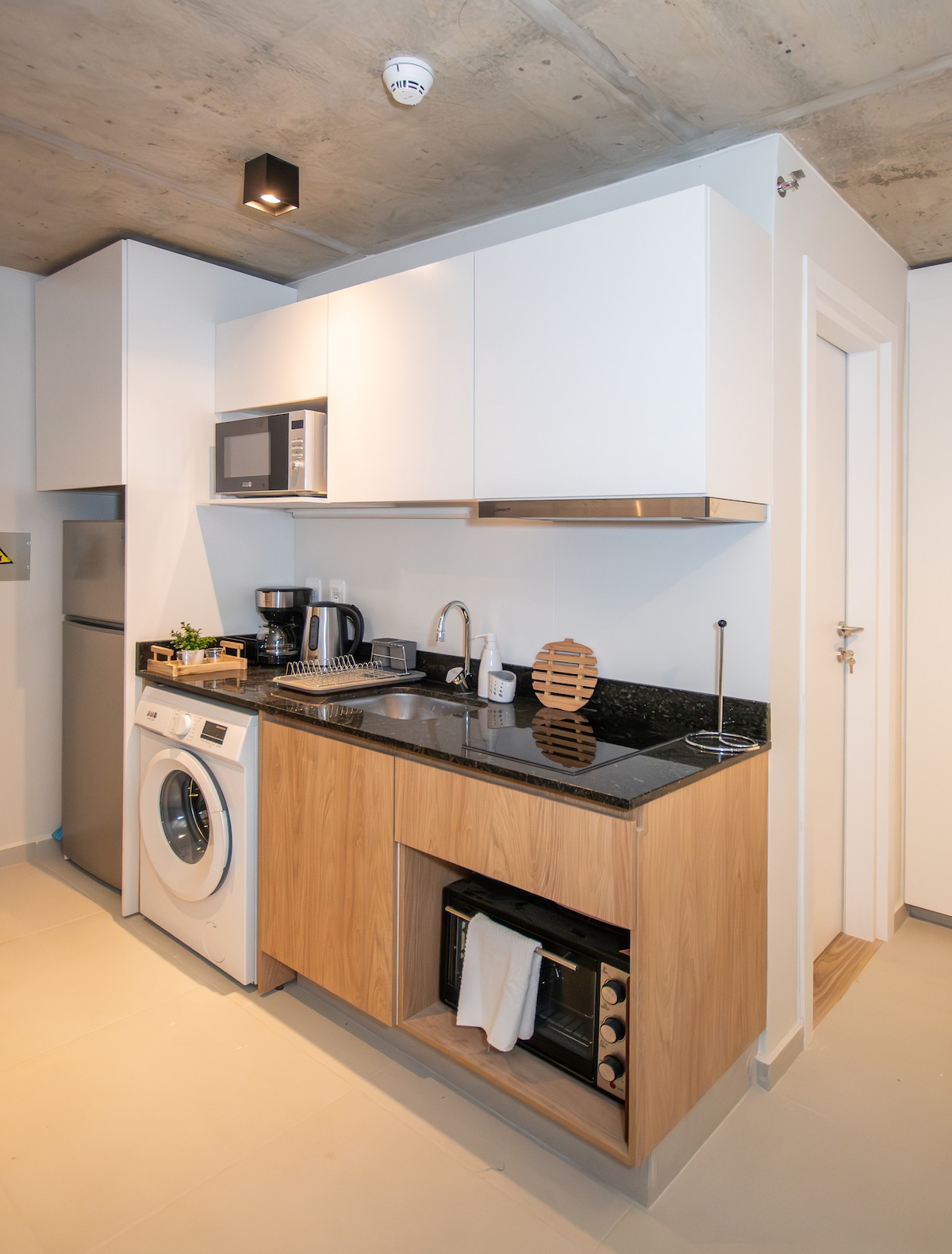 Monoambiente de 29m² con balcón privado * A 3 minutos a pie de cafeterías, restaurantes y centro comerciales * Equipado para una cómoda estadía * Espacio de trabajo * Wi-Fi de 200 Mbps * 1 Smart TV * Cafetera * Lavadora en el apartamento + Tendedero * Portero 24/7 * Estacionamiento para 1 vehiculo Amenities * Piscina * 2 salones de evento c/ parrilla (1 exterior y 1 con aire acondicionado) * Gimnasio * Cine * Area de coworking