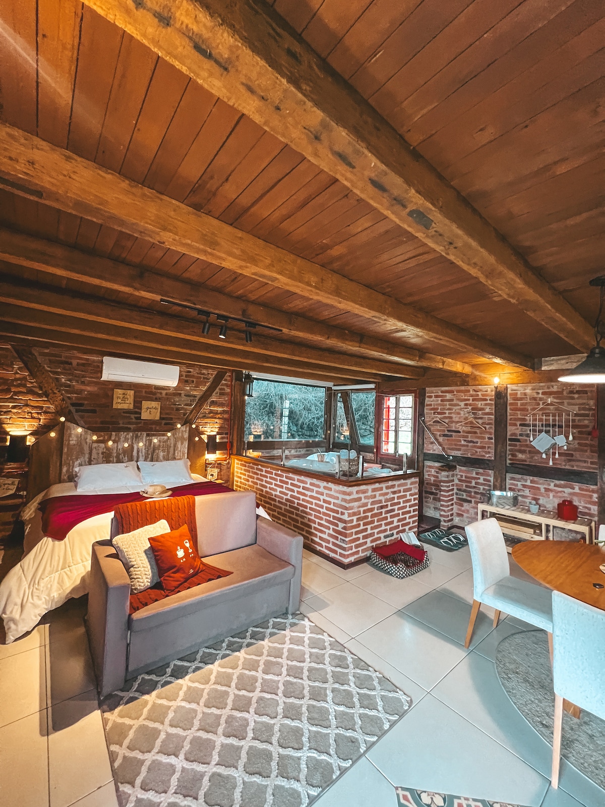 El RED CHALET es uno de los seis chalets de Vila Entre Montanhas, situado cerca del centro, en el encantador Picada Café/Serra Gaúcha. Hay 100m² distribuidos en dos plantas y con todas las comodidades: hidromasaje con cromoterapia, calentador de leña, TV inteligente, encimera, nevera y microondas, así como hamaca, parrilla y chimenea ecológica en el balcón. La zona verde tiene terrazas, hamacas y casa del árbol.