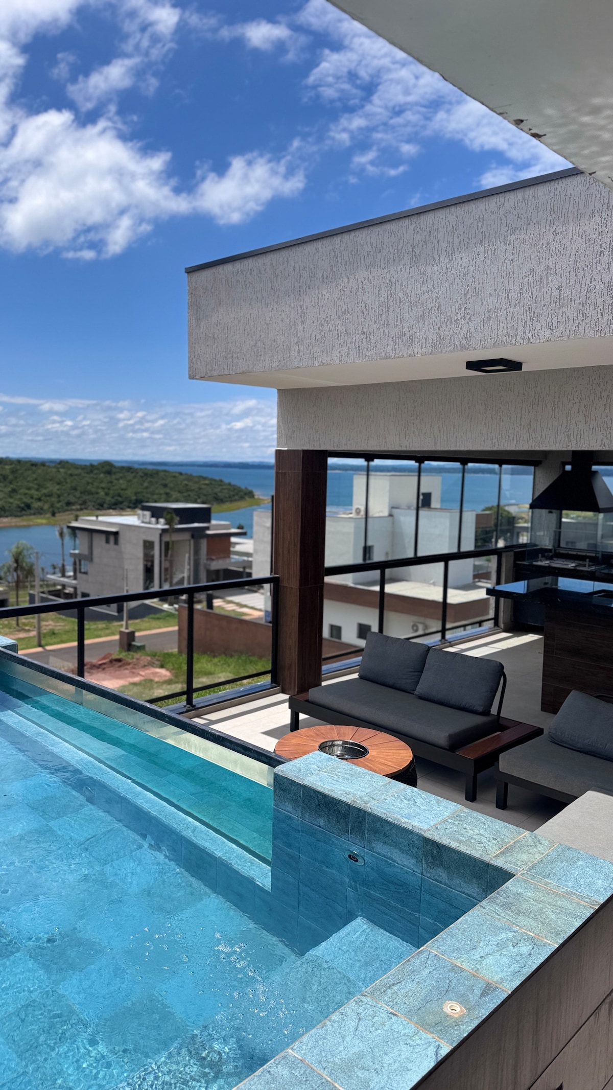 O Chalé Tico-tico chegou para encantar! Um chalé moderno, aconchegante e cheio de personalidade, pensado para quem valoriza conforto, vista privilegiada e momentos especiais à beira da represa. O grande diferencial está na varanda em “V” exclusiva da villa, com churrasqueira privativa, ideal para curtir o pôr do sol e reunir quem você ama. A ampla parede de vidro traz iluminação natural e uma vista incrível da praça dos chalés e da represa, integrando o interior com a natureza.