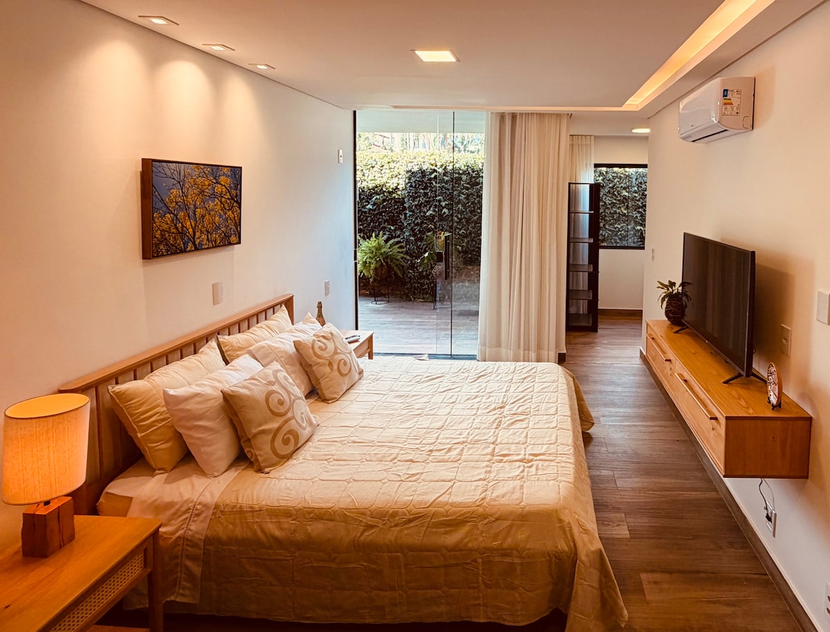 Refugio moderno a orillas del lago Paranoá, con una de las vistas más privilegiadas de Brasilia. Nuestros huéspedes nos dicen: “¡Fue la mejor experiencia en Airbnb que hemos tenido!Despiértate con el lago, camina en la naturaleza y contempla atardeceres impresionantes. Todo nuevo, baño privado con armario, 2.ª habitación, comodidad y espacio incomparables. Tres televisores inteligentes, cocina equipada, cafetera con cápsulas y un kit de bienvenida súper. Ubicación perfecta: a 9 minutos de Iguatemi, a 15 minutos de Esplanada y a 25 minutos del aeropuerto.