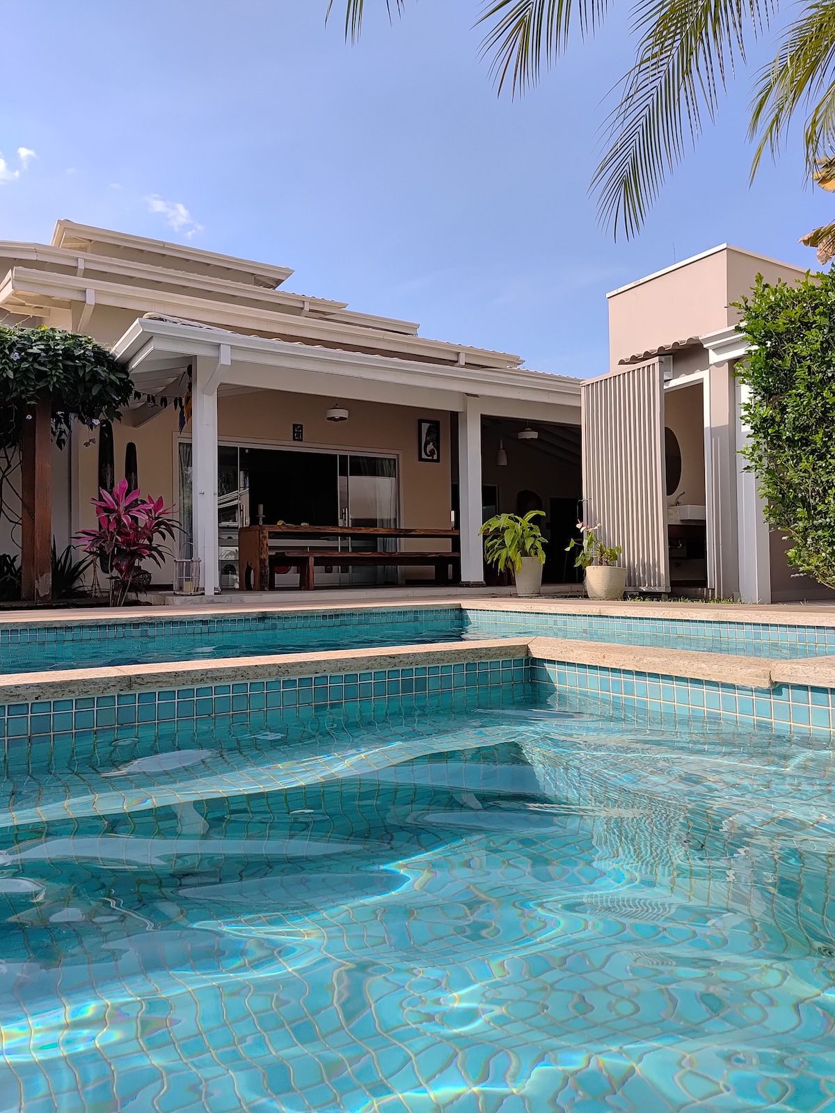 Lleva a toda la familia a este gran lugar con mucho espacio para divertirse. Nuestra casa tiene piscina y sauna, salón y cocina con aire acondicionado, las habitaciones son acogedoras, con aire acondicionado y una gran vista, excelente para descansar los fines de semana y días festivos. La casa está en la fase de acabado, por lo que algunas áreas como las escaleras y la piscina están en la fase de recubrimiento. Cerca del bar y el mercado. ATENCIÓN: No se proporcionan sábanas ni toallas.