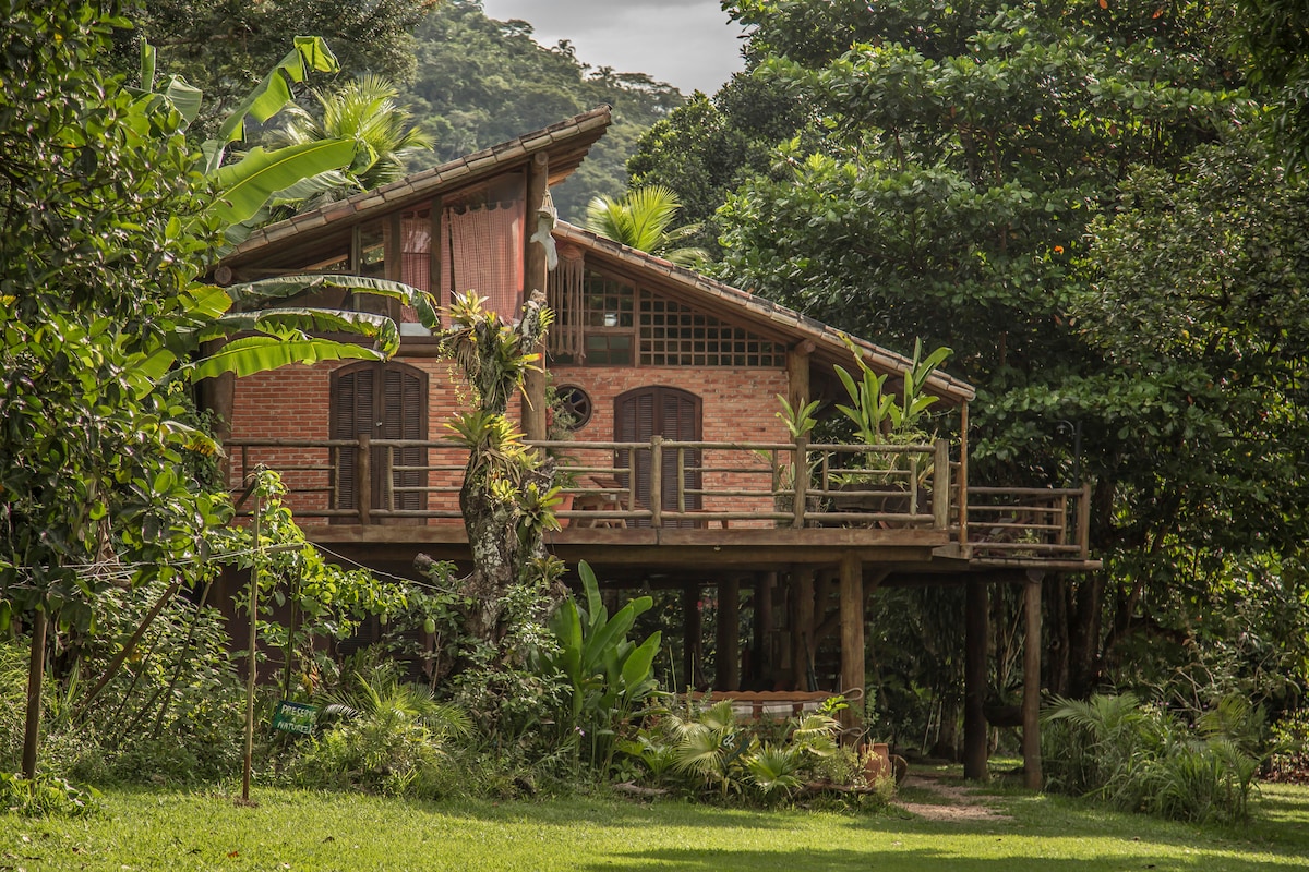 Casa futurista en la Serra da Bocaina, a 10 km de Paraty. Está ubicada en la Aldea Rizoma @aldeiarizoma, un condominio estructurado y seguro de casas integradas en el bosque. Tenemos cascadas con piscinas naturales y acceso privado. Nuestra agua es potable y proviene del manantial. Contamos con agroforestación, sauna seca, sala de gimnasio integrada en la naturaleza, senderos y se pueden contratar diversas experiencias terapéuticas y ecológicas,con una de las mayores biodiversidades del planeta.