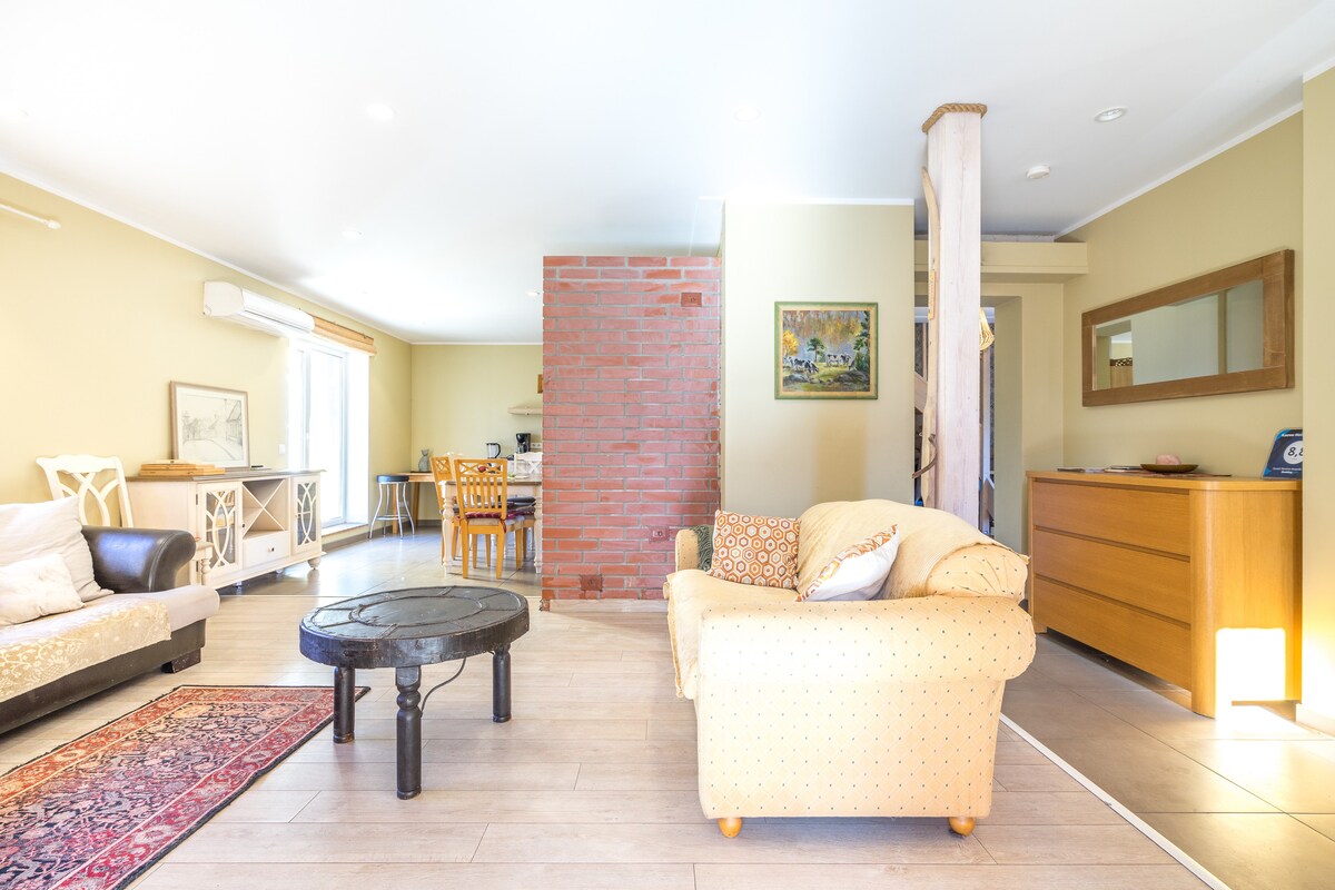 The 80m2 roof-apartment is located in the centre of Viljandi, 5-minute walking distance from the old town. The apartment is on the third/roof floor of a wooden building house surrounded by a huge garden. Possible to park a car/bicycle.
