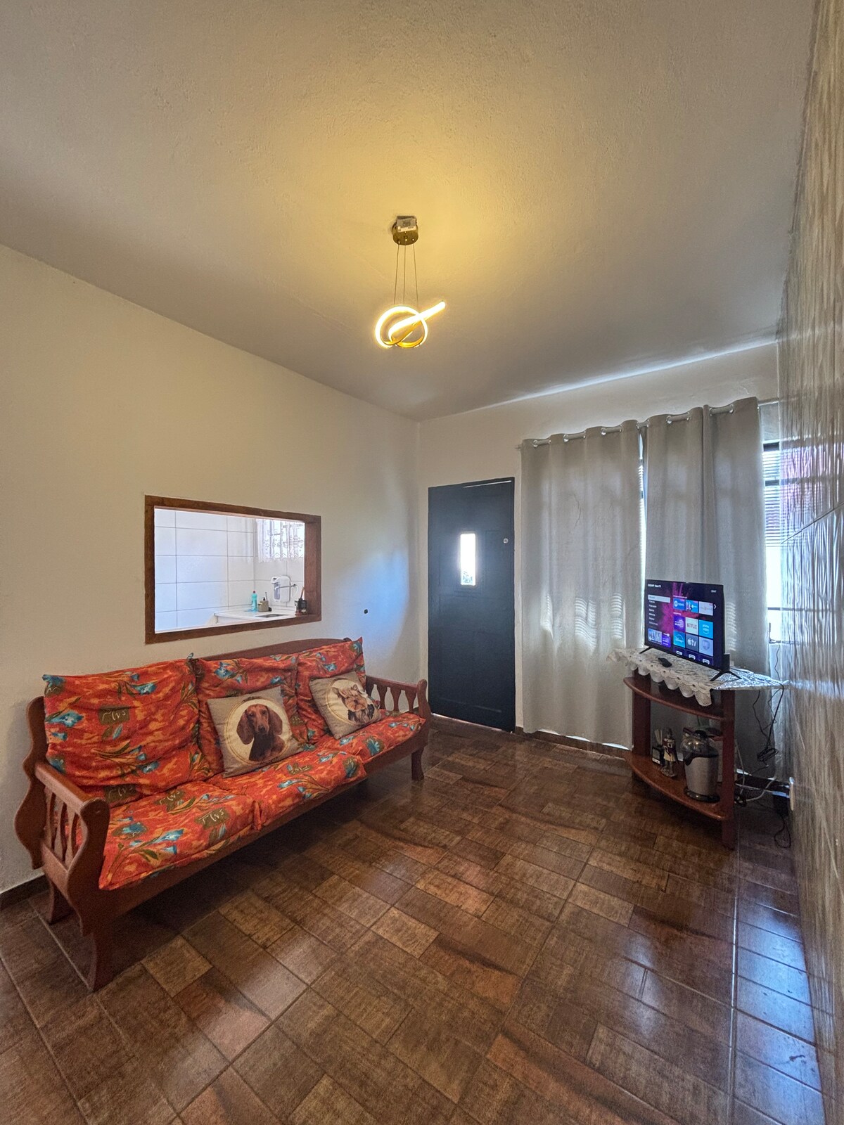 Moderno y acogedor, todo renovado, con muebles y electrodomésticos nuevos. Tiene capacidad para 4 personas y acepta una mascota pequeña. Completa Internet de carrusel y fibra VIVO. Cocina completa y equipada, lavandería, baño renovado, sala de estar con TV inteligente de 40pulgadas y Streamings incluidos. Habitación doble con TV canales abiertos de 40pulgadas, habitación individual con bicama retráctil y escritorio con escritorio de computadora. Plaza de aparcamiento exclusiva para coches pequeños/medianos. Fácil acceso a las principales autopistas, bien ubicado.