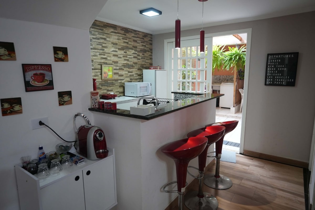 Casinha de Vila (fechada, com portão) localizada no coração de Pinheiros. Casinha de vila c/ acesso privado, muito seguro, possibilidade de estacionamento para até dois carros, pet & family friendly. Pra esquecer da loucura da cidade que nao para nunca e ter a sensação como se estivesse em uma casa de praia. Presença de um mico estrela ( sagui do tufo branco)que é selvagem e vive nos arredores e vez ou outra gosta de visitar a casa , carinhosamente o chamamos de Maurício.