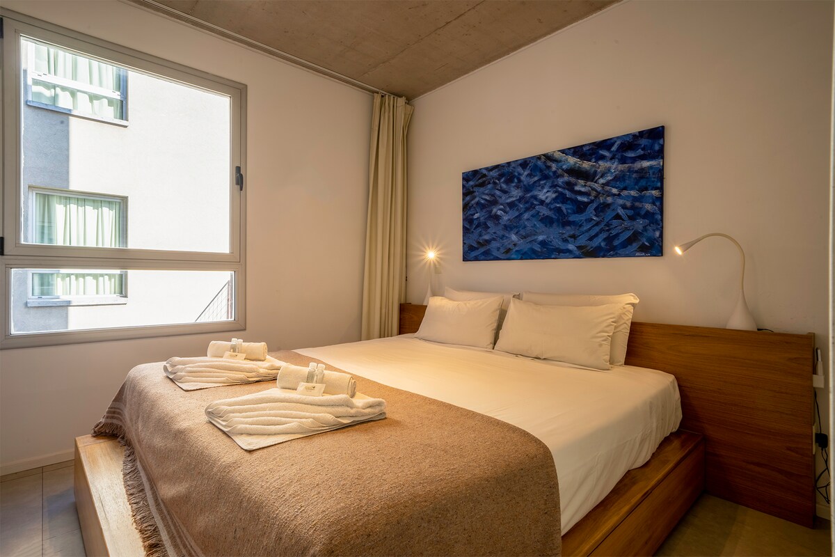 Welcome! We are happy you are here In this apartment you'll find: 2 Queen-size beds | Smart TV 42' + Netflix | Safe Deposit Box | Home Office Desk | AC | Hair dryer 1 Full Bathroom Toiletries and towels Kitchen & Dining-room Fridge | Microwave | Toaster | Dinnerware Nespresso | Electric Kettle | Table w/ 4 chairs | Electric Burner Swimming pool Gym High-speed Wi-fi Parking (extra charge) Jacuzzi & Sauna (from the age of 16) Security 24/7 Smart lock (w/ code) Needing anything else? Ask us ;)