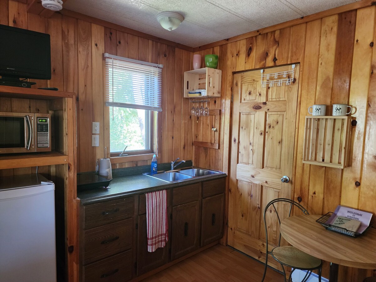 Escape to a one-room cottage surrounded by autumn colors and trails. Perfect for couples or solo travelers, it features a queen bed and a kitchenette with hot plate, fridge, microwave, toaster, kettle, coffee maker, and dishes. Please bring your own bedding and towels. At the campground, enjoy hiking trails, disc golf, a recreation hall with board games, shuffleboard, pickleball, and mini golf. A cozy and inviting base to relax, explore and take in the crisp air and brilliant fall beauty.