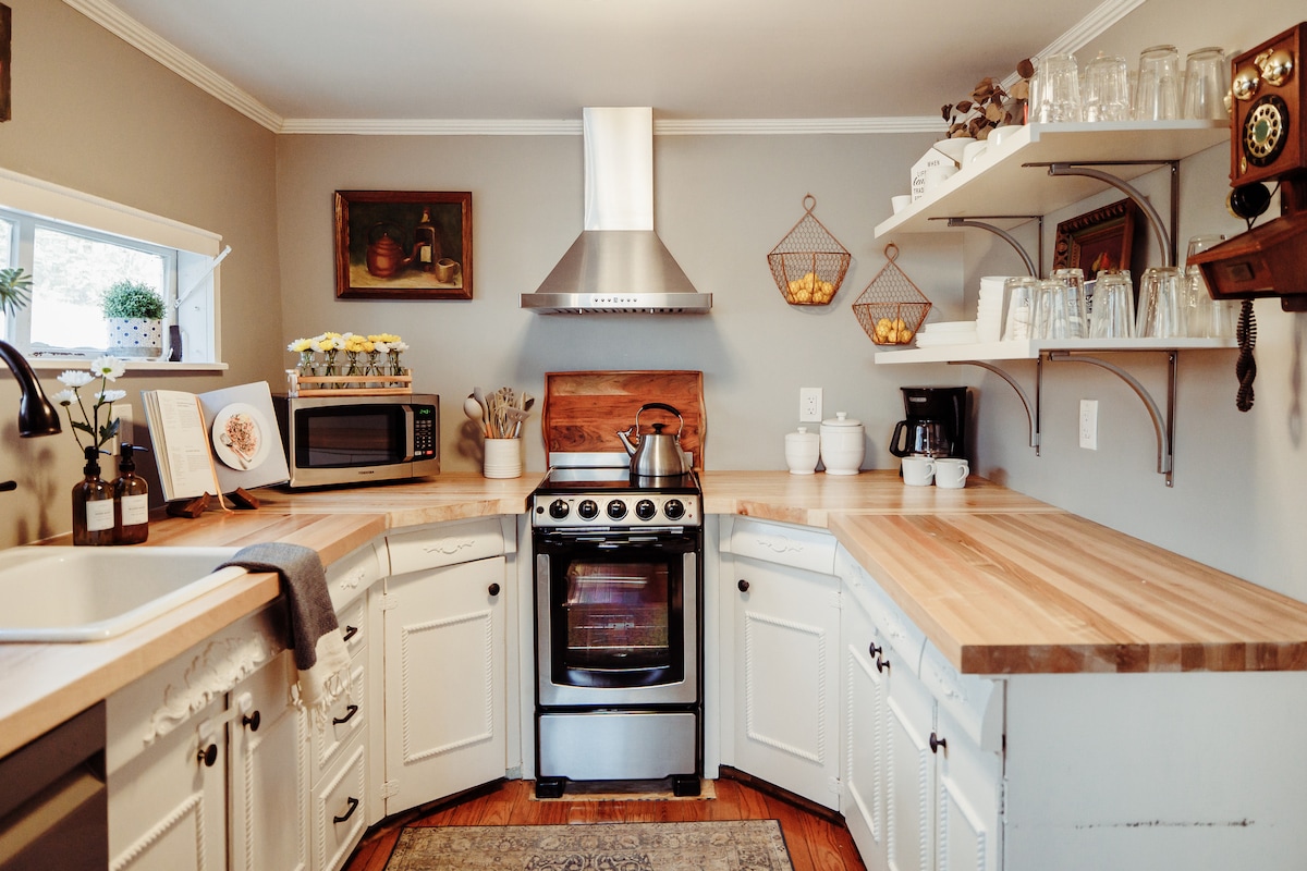 Ubicado en el corazón de Frenchtown Nueva Jersey, encontrarás encanto escondido en los exuberantes jardines de River Witch Cottage. • Recupérate en una lujosa cama tamaño queen. • Prepara una comida sencilla en la cocina totalmente equipada • Nutrete en el encanto de un comedor íntimo • Reclínate con comodidad junto a una hermosa chimenea de gas • Rejuvenece en los chorros de la bañera de hidromasaje, sumergiéndote bajo el resplandor natural de los tragaluces • Tómate un café por la mañana o un vino por la noche en el tranquilo entorno del patio privado al aire libre.