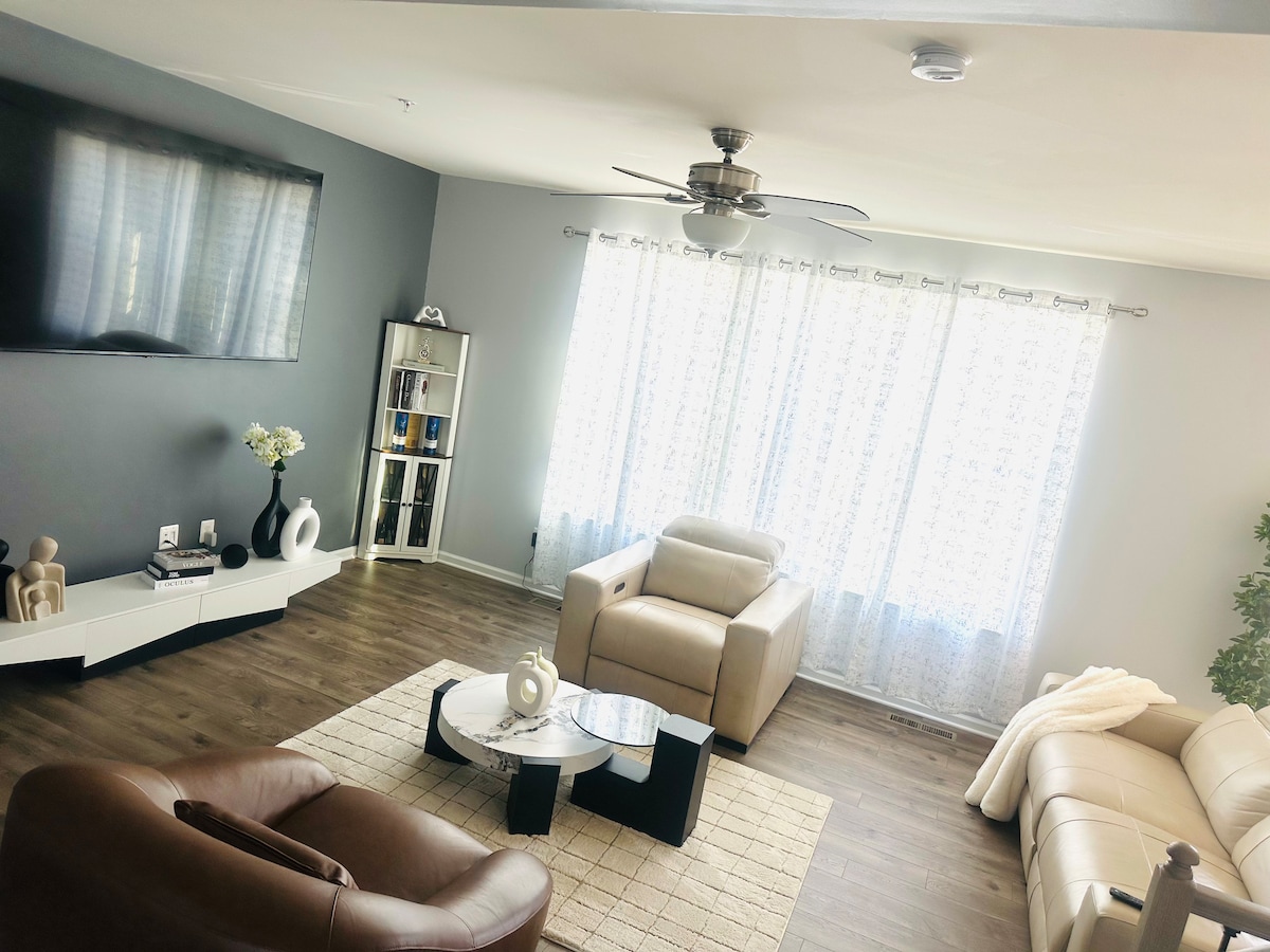 - Rm familiar iluminado por el sol con chimenea eléctrica incorporada y TV inteligente. - Comedor para 6 personas, televisor inteligente, chimenea eléctrica y opciones de iluminación múltiple para el modo. - Cocina totalmente equipada, barra de café, barra de rodillas. - Segundo alojamiento familiar con sofá cama, baño privado, libros, juegos, lavandería. - 2 dormitorios en la planta superior con ventiladores de techo, televisores inteligentes. - Baño completo común con bañera y ducha. - Estacionamiento privado para 2 personas. - Asientos clásicos en el porche delantero. - Céntrico para un montón de opciones de restaurantes. Nos emociona mucho recibirte. Reserva ahora o pregúntame cualquier cosa