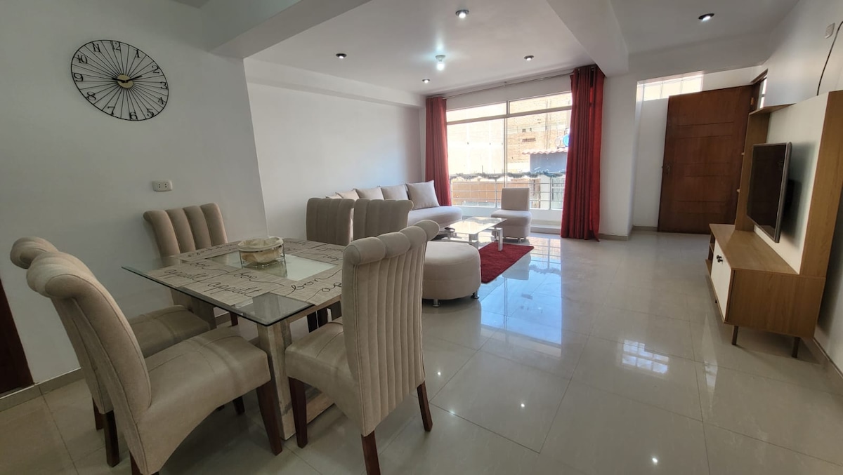 Disfruta de lo mejor de Huánuco, en un departamento completo, céntrico, elegante y super tranquilo… ahorra en movilidad y conoce más de la ciudad con el mejor Clima del Mundo. Departamento cuenta con ascensor, se permiten mascotas pequeñas. Ideal para visitas de turismo, trabajo o negocios.