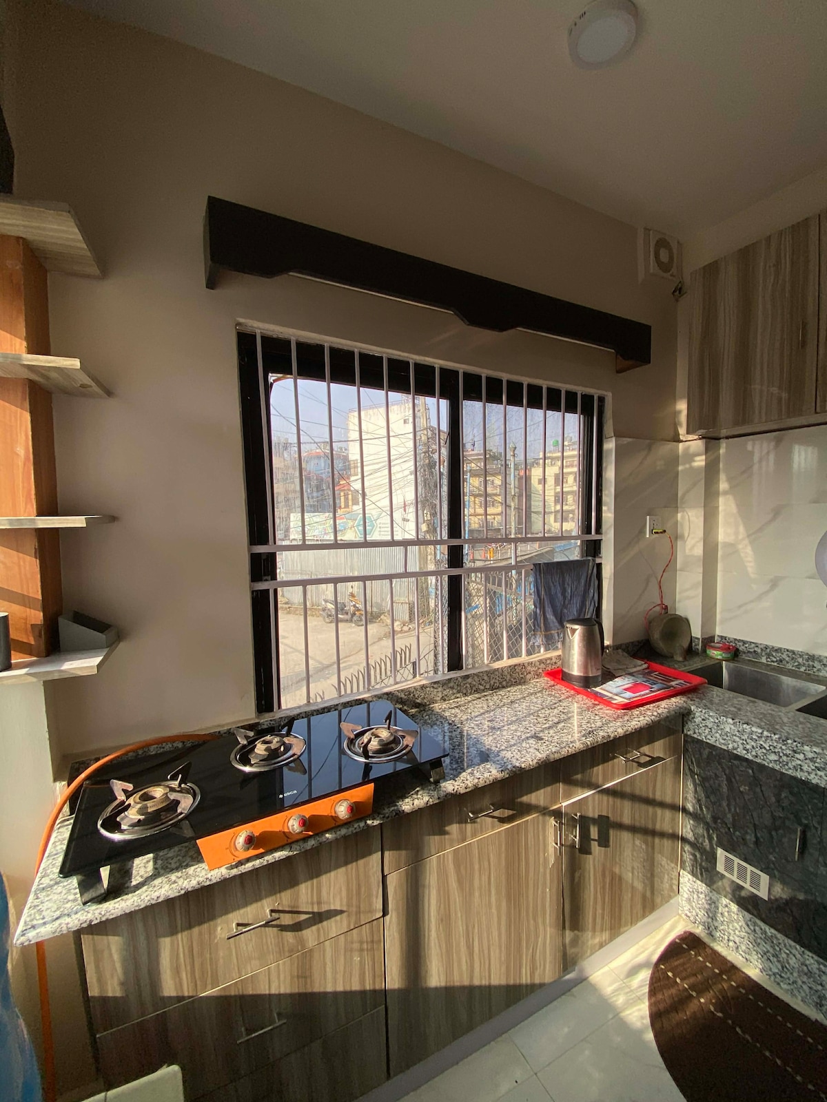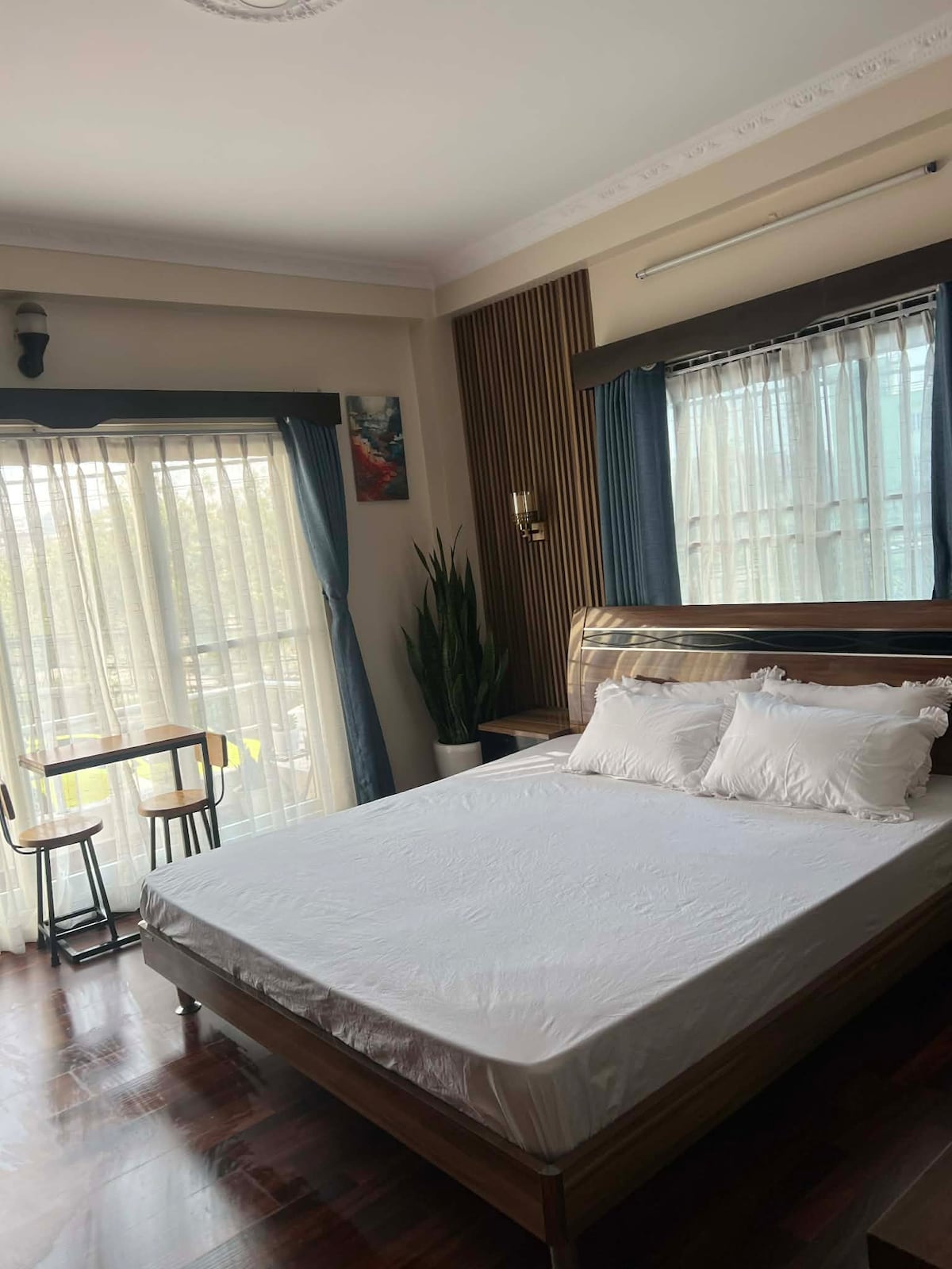 This modern, fully furnished studio is perfect for couples or solo travelers seeking an authentic stay in historic Patan. Located on the main street, it’s a short walk to Patan Durbar Square, Krishna Temple (5 min), Labim Mall (7 min), and Pulchowk UN Office (15 min). Being in a lively central area, it’s best suited for guests who enjoy a vibrant atmosphere rather than complete quiet. We offer 15% weekly and 30% monthly discounts. Ask us about stays longer than 3 months.