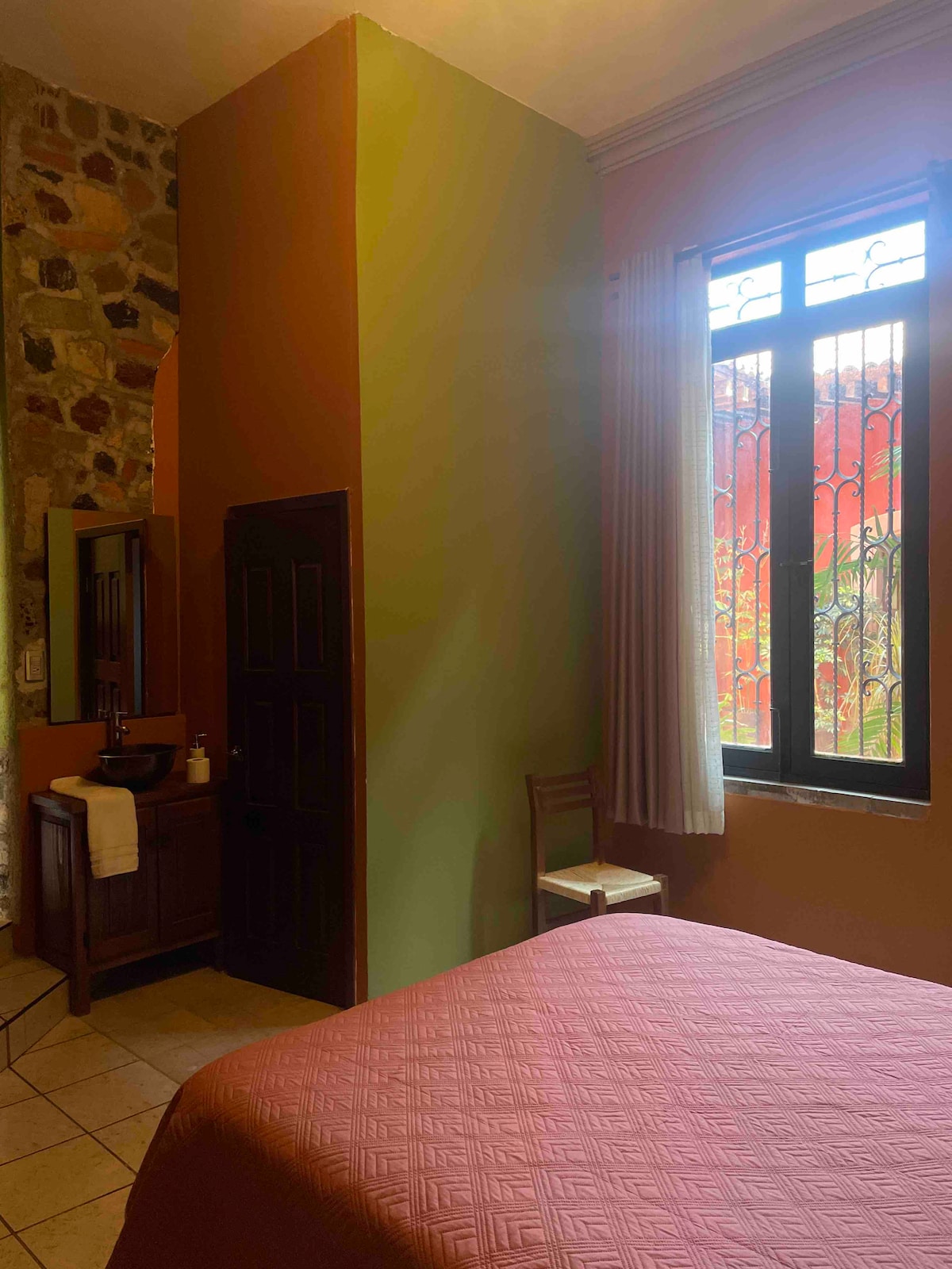 Suite Presidencial – Lujo, intimidad y vistas encantadoras Vive la experiencia más exclusiva de Casa Colorada en nuestra Suite Presidencial: un refugio privado donde cada detalle está diseñado para brindar confort, descanso y una atmósfera inigualable. Esta amplia habitación combina elegancia, privacidad y calidez, ideal para escapadas románticas, celebraciones especiales o simplemente para consentirte.