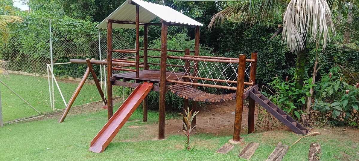 Relájate con toda la familia en este alojamiento tranquilo. Una casa sencilla pero llena de amor, encuentro con la naturaleza aire puro, mariposas, aves y frutas frescas, hamacas, estufa de leña, aquí te sientes libre, puedes escuchar buena música, puedes refrescarte en la piscina, agua de pozo natural, puedes sentarte bajo los árboles y olvidarte de la fiebre del día a día. ¡Ven a vivir es una tranquilidad 💓 cerca de la ciudad más florida de São Paulo, Holambra! Las reservaciones mensuales obtienen un 50% de descuento.