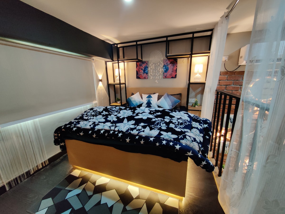 IG - shelterandsky Cinematic Stay at Shelter & Sky - Escape into a world of peace, comfort, and cinematic charm. - Enjoy movies on a large projector screen that turns evenings into theatre-like experiences -Sip coffee or unwind on two private balconies, and soak in the calm mountain air. -Perfect for couples seeking romance, friends creating memories, or solo travelers finding serenity, this unique stay blends relaxation, creativity, and the magic of cinema in every moment