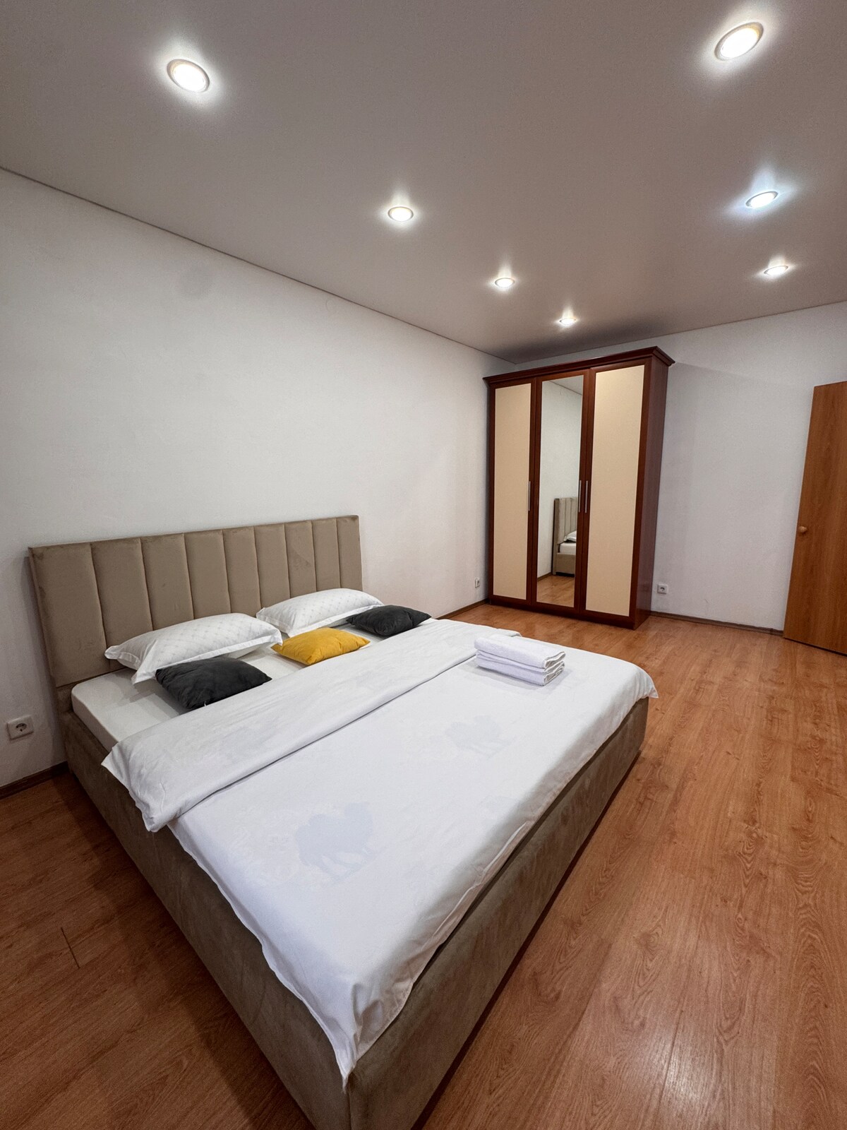 Un apartamento ordenado y limpio. Ligero y acogedor en un cómodo segundo piso de cinco. El apartamento tiene electrodomésticos nuevos, buena reparación. Hay todo lo que necesitas para que tu estancia sea cómoda. Ropa de cama, toalla, albornoz y zapatillas individuales para cada huésped. Buena ubicación, todas las tiendas cercanas, paradas de autobús, a 5 minutos hay una gran casa comercial y plaza central, obelisco, akimat.