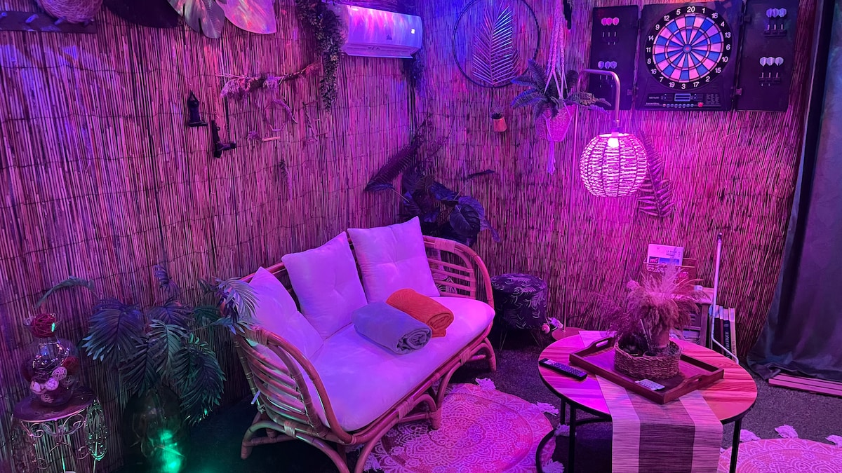✨ Découvrez le Mirage Tropical , une parenthèse raffinée au bord de la Loire 🌴. Profitez d’un Spa , Table de Massage d’une terrasse élégante et d’un espace jungle dépaysant pour vous évader. Amusez-vous autour du jeu de fléchettes, partagez un apéro exotique ou détendez-vous dans une atmosphère unique. Le soir venu, la chambre s’illumine de couleurs envoûtantes pour un moment chic et romantique 💖. Ici, chaque détail sublime votre séjour pour créer des souvenirs mémorables.🌴❤️❤️💕💕💕👄🫂❤️