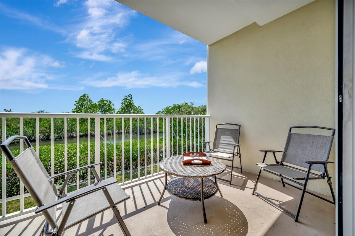 ¡Condominio en complejo vacacional frente al agua y piscina climatizada en el balcón!