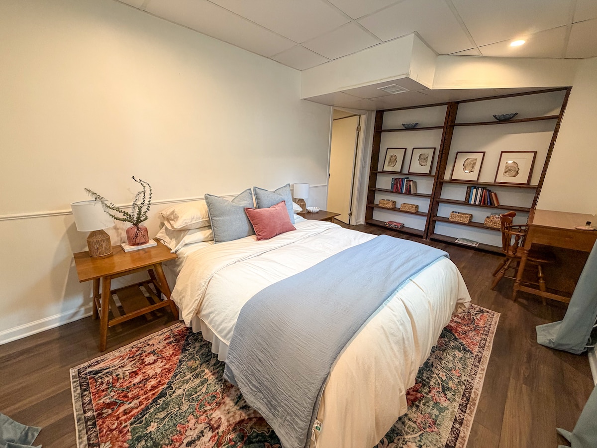 Este es un apartamento privado en el sótano con su propia entrada, separado de la casa principal, que alberga a otros huéspedes. Este apartamento privado está equipado con un juego de cama tamaño king, silla cómoda, sofá cama plegable, 2 televisores inteligentes para ver tus aplicaciones favoritas, baño completo, cocina para comer en un barrio tranquilo. Fácil acceso a empresas de la zona, carreteras principales, lugares de interés, MARTA y el encantador centro de Norcross. Hay acceso a la terraza con parrilla, mesa de patio y lavadora/secadora compartida con otros huéspedes de la casa.