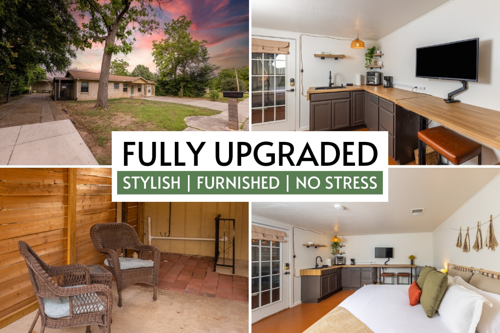 Relájate en esta suite privada independiente de 1 dormitorio y 1 baño con su propia entrada y estacionamiento fuera de la calle. Camina hasta la Universidad Estatal de Texas o disfruta de los restaurantes, bares y locales de música del centro de San Marcos. Perfecto para una estancia relajante para vacaciones, negocios o visitas con tu estudiante (¡sabes que te extraña!). Las comodidades incluyen una cama súper cómoda, cargador de vehículos eléctricos (tanto para Tesla como para otros vehículos eléctricos), cafetera, nevera, microondas, espacio de trabajo de escritorio, lavadora/secadora gratuita y wifi.