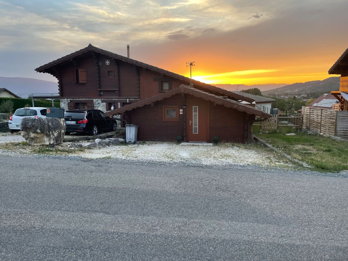 Situado a media hora de Ginebra, en la aldea de SEVRAZ a 850 m de altitud, tendrá magníficas vistas. Ambiente acogedor, terraza y jardín para descansar, será su pequeño refugio para hermosas aventuras en nuestros lagos y montañas que están justo cerca. A 15 minutos, el Macizo de las Brasses, estación familiar, es el lugar ideal para aprender a esquiar, o para practicar senderismo en verano y para disfrutar de los placeres de la montaña con sencillez.