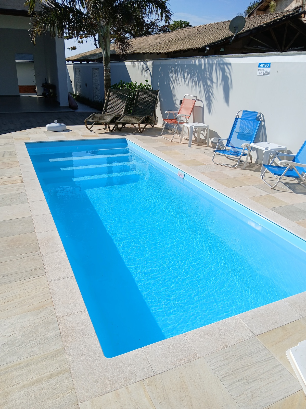 Casa en Armação - Penha-sc casa totalmente amurallada con portón electrónico. La casa tiene 3 dormitorios, todos con aire acondicionado, 3 camas dobles y 3 literas según se desee. 3 baños Amplia zona de ocio con barbacoa, piscina 6x3 con 1,40 de profundidad, garaje cubierto para 3 coches y con espacio para 2 coches más en la parcela Sala de TV con Netflix Cerca del mercado, panadería, etc. A 400 m de la playa y a 300 m del parque Beto Carrero World.