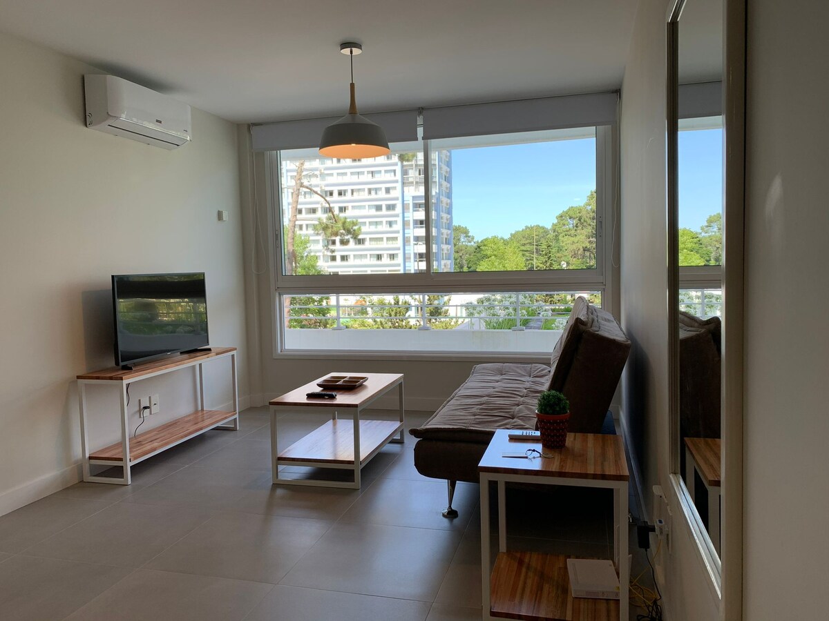 Apartment in Torre YOO Punta del Este by Philippe Starck. It has one bedroom with full bathroom, living room with semi-integrated kitchen, which connects to a large terrace. Very bright! Finely decorated. Air conditioning in the living room and bedroom. It has a garage. The building has all the amenities of a 5-star resort: 24-hour reception, maid service, beach service, kids club, indoor heated pool, outdoor pool, barbecues, meeting room, microcinema and gym.