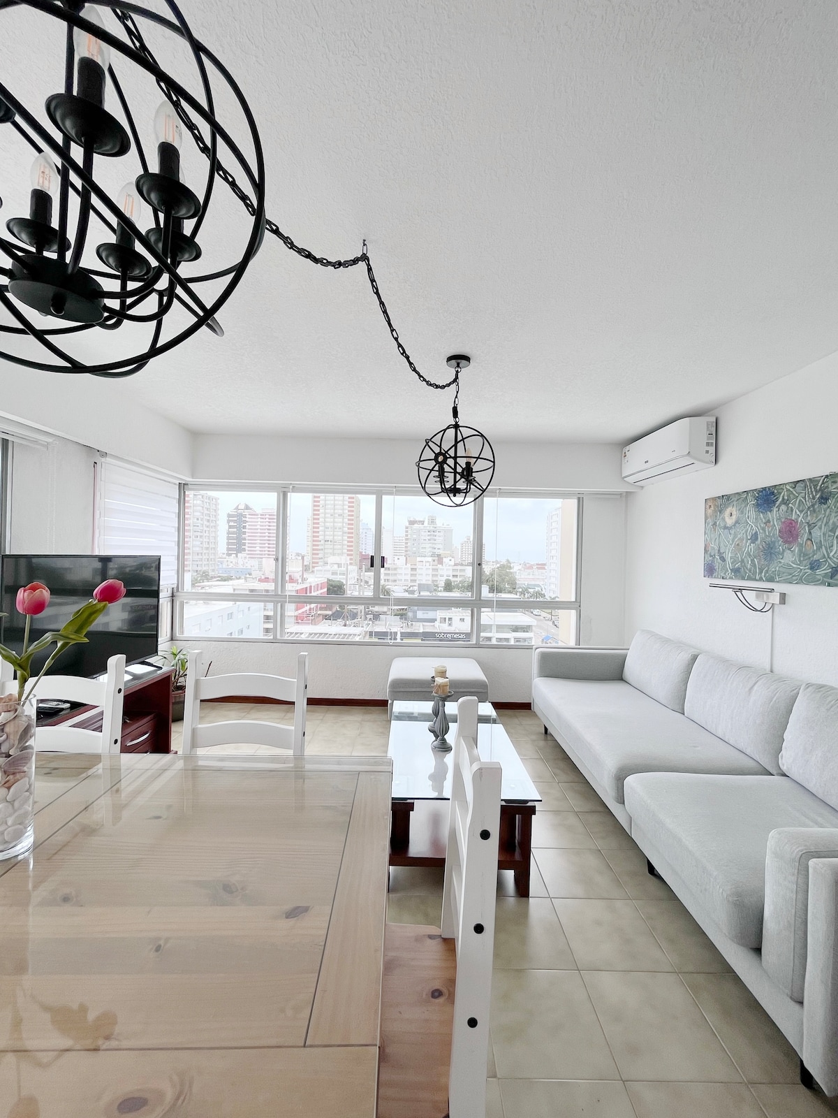Encantador, luminoso y cómodo apartamento de un dormitorio, ubicado en la zona más estratégica de la Península, sobre la Plaza de Artesanos. 🌺 Decorado por interiorista, con estilo americano contemporáneo, cada espacio y mueble fue elegido para crear belleza, armonía y confort. 🏖️ A pasos de todos los servicios, de la playa y el puerto. Cuentan con sillas y sombrilla para llevar a la playa. ☕️ Contamos con descuentos en la carta del café-restó situado frente al apartamento!!