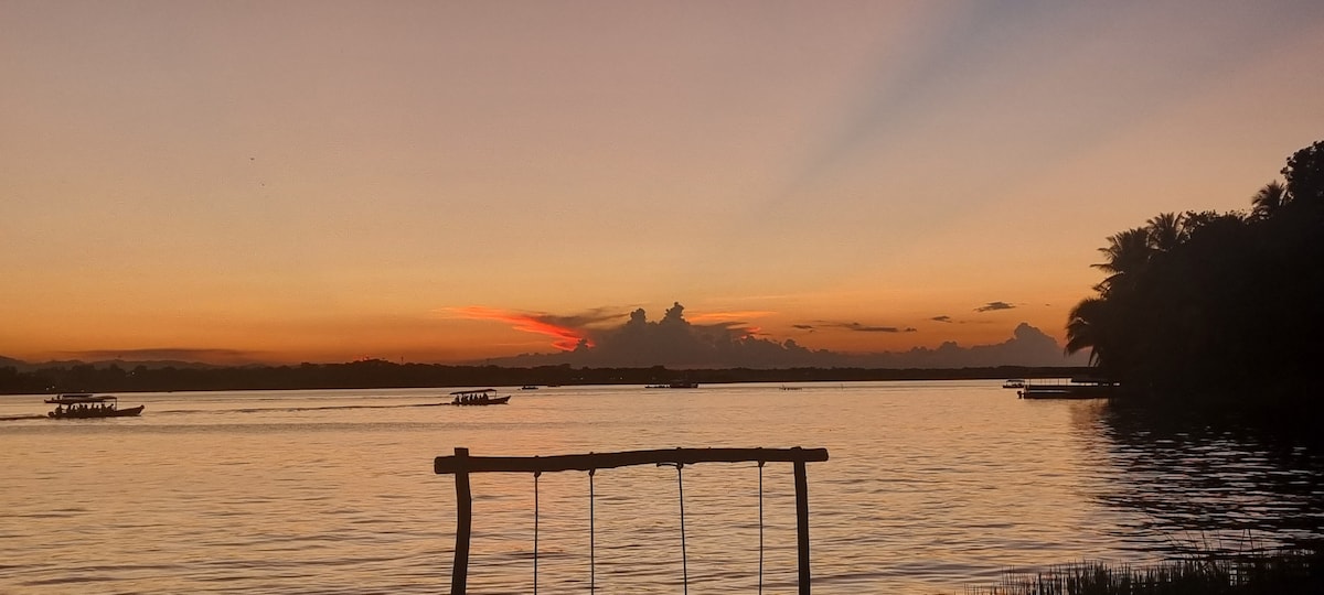 Un acogedor refugio frente al Lago Petén Itzá, ubicado junto al Parque Arqueológico Tayasal. La villa es privada, de una habitación, ideal para parejas o escapadas tranquilas. Aunque hay otra casa cercana, cada espacio es independiente, brindando privacidad y comodidad. Relájate en una playa tranquila ideal para niños y vive una experiencia donde el confort, la naturaleza y la cultura se unen en perfecta armonía. Perfecta para descansar, disfrutar la naturaleza y crear recuerdos inolvidables.