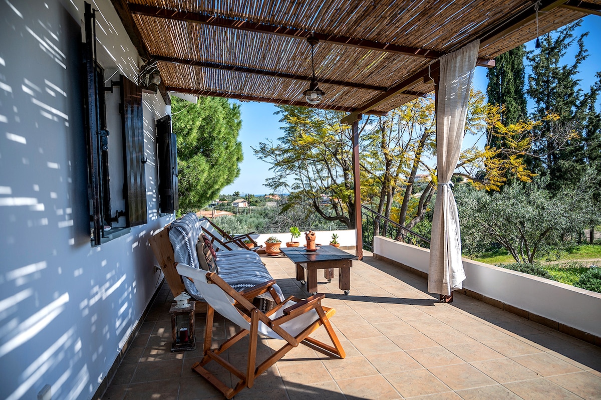 A minimal decorated appartment close to the sea with great view. The big garden full of olive trees and many mediterranean plants completes the view from the balconys. Activities like jogging, fishing, cannoying , basketball and water sports can easily take place. House's proximity to all the famous and luxury resorts and other famous islands ( like Spetses) makes your experience to Porto Heli unforgetable.