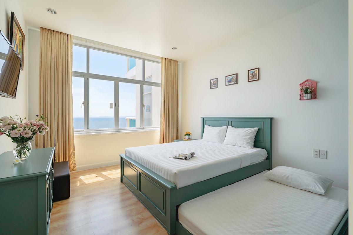Relájate en este espacioso y sereno refugio, donde la relajante melodía del océano llena el aire. Disfruta de impresionantes vistas al mar desde todos los rincones del apartamento, creando la escapada costera perfecta. A solo 150 metros de la playa de Ong Dia, tendrás fácil acceso a la orilla, con una gran variedad de restaurantes y tiendas a poca distancia a pie para mayor comodidad.