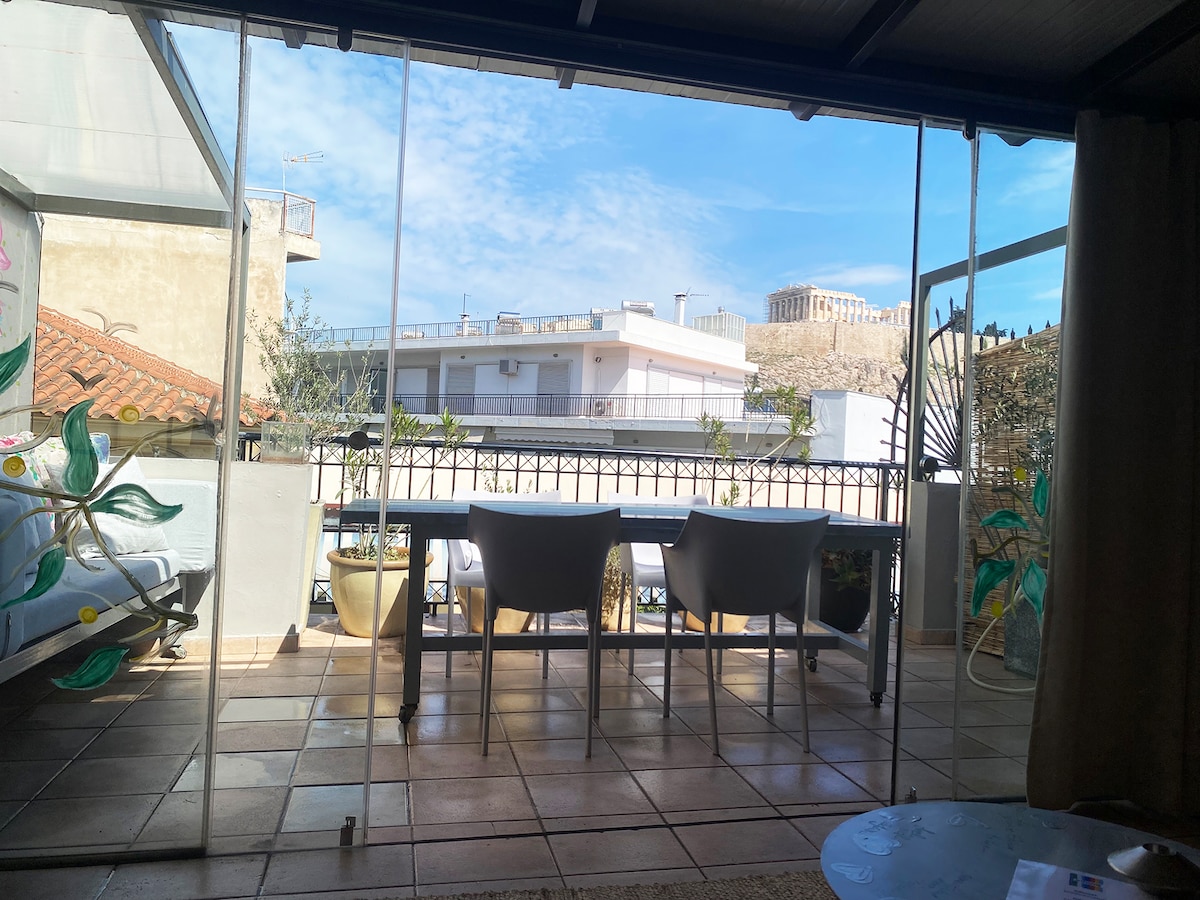 ¡Estudio en la azotea con vistas a la Acrópolis!