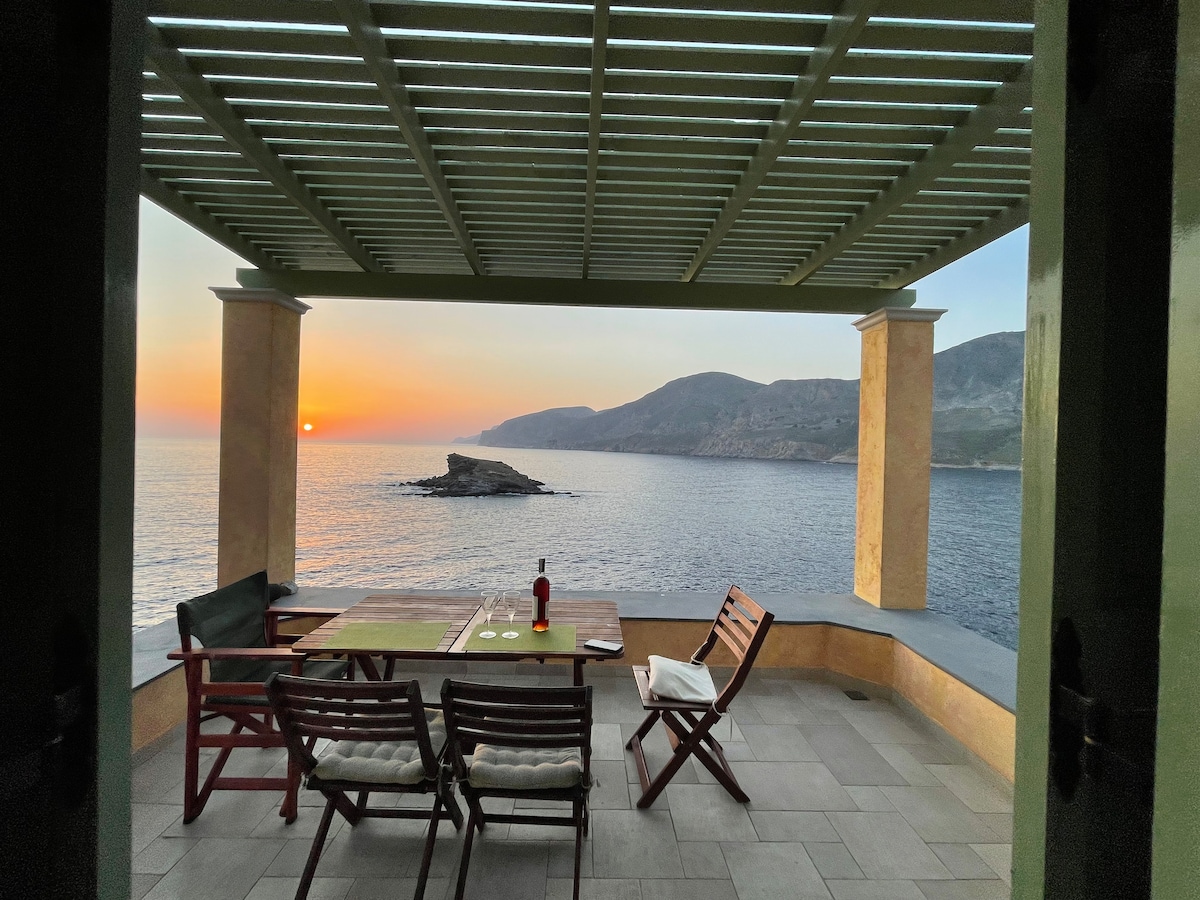 An amazing waterfront Greek villa, recently lovingly restored with the help of local craftsmen. It has private access to the sea and is right beneath the Odyssey climbing sector. The villa is nestled within secluded grounds with outdoor pizza oven and shower. Guests can relax in private and enjoy the beautiful Aegean Sea, with views out over the island of Telendos, and the ancient ruins of Kasteli. Perfect for those looking for luxury, and all the activities this unspoilt island has to offer.
