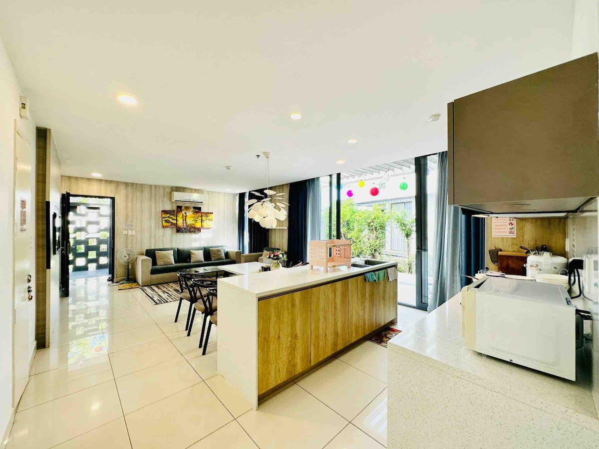 La villa se encuentra en OceanAmi Villa & Spa- centro vacacional de 5 estrellas, cerca de Nuoc ngot pass. a sólo 90 minutos de HCMC; Con cancha de tenis, piscina, restaurante, gimnasio, etc. Si los huéspedes desean tener una fiesta u otras necesidades, el ama de llaves les ayudará con un cargo por servicio razonable. Es muy fácil de encontrarlo mediante la búsqueda en el mapa de Google.