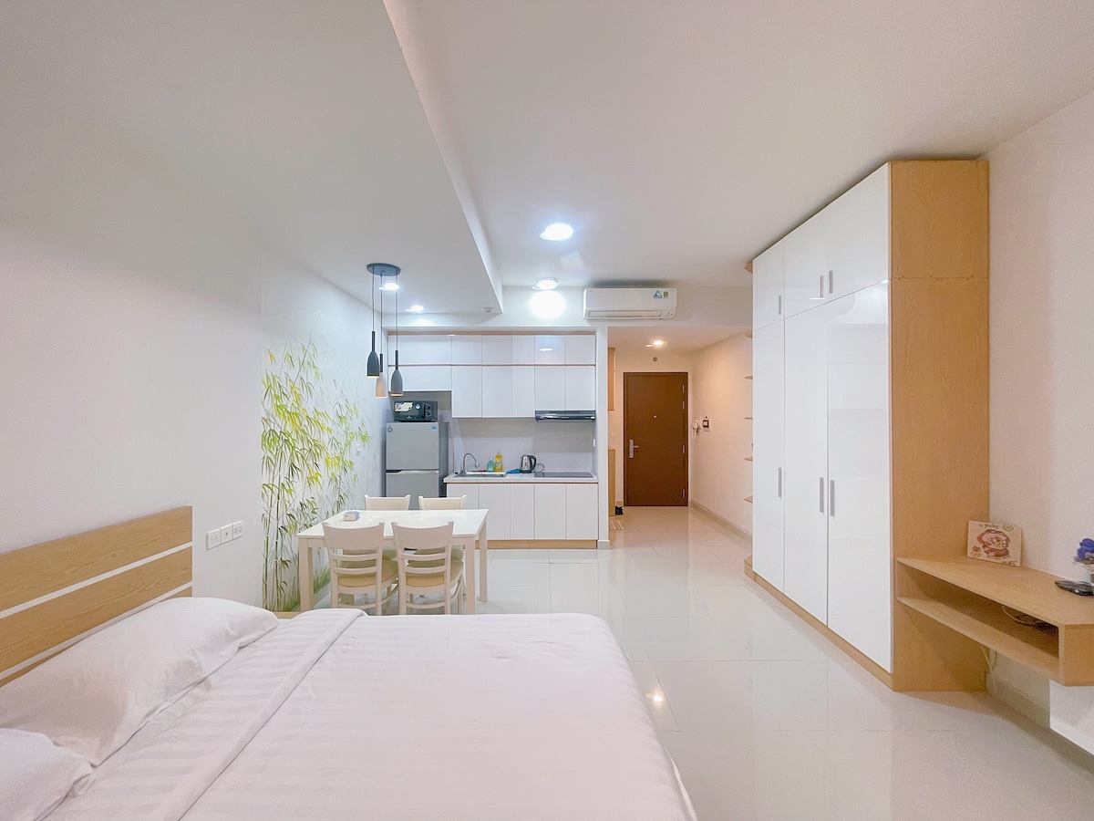 Nuevo proyecto que se encuentra cerca con el Distrito 1 Estudio de alta gama y 100% nuevo con todos los servicios que incluyen: piscina infinita,sauna,lavandería, baño, wifi gratuito, cocina, mesa de comedor, espacio de trabajo conjunto, sala de fiestas,... ★Tiempo estimado en taxi - A 10 minutos de la catedral de Notre Dame. - A 5 minutos del mercado Ben Thanh. - A 5 minutos del edificio Bitexco. - A 15 minutos del edificio The Landmark 81.