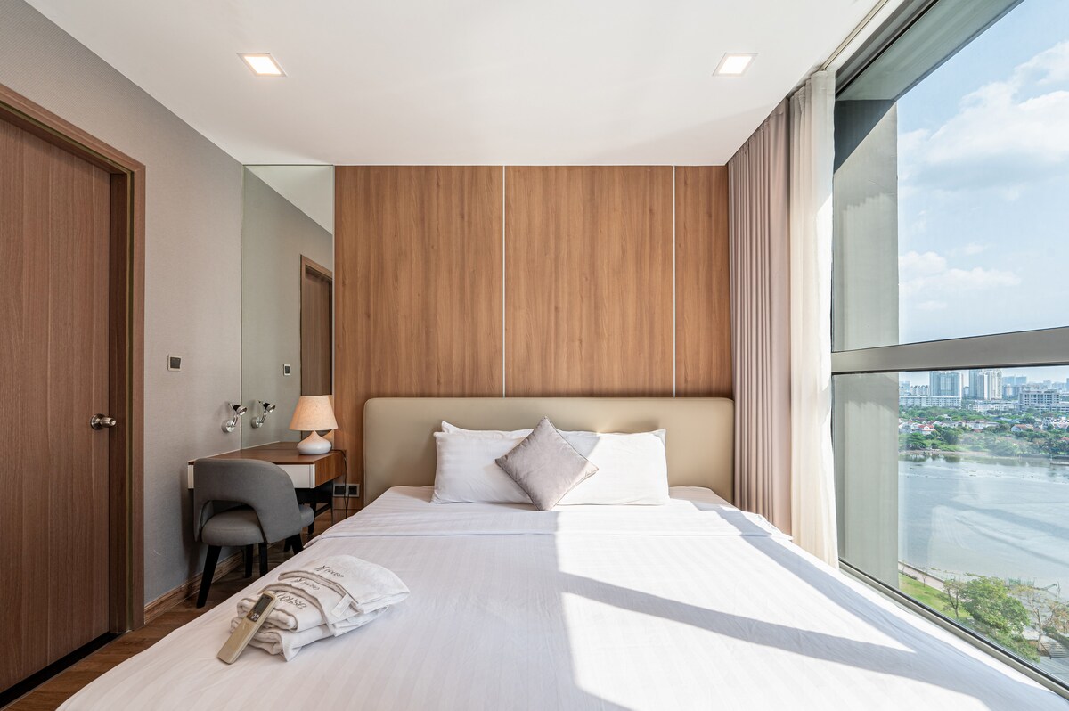 Este alojamiento único está diseñado para disfrutar de una experiencia tranquila. Con una puerta corrediza inteligente, tu sala de estar y tu dormitorio están fácilmente conectados para maximizar la espaciosa casa de 50 m2. Caminando por el puente BaSon entre el condominio y D1, puedes sentir la brisa del río Saigón y las espectaculares vistas de la ciudad. Con solo 5 a 10 minutos en taxi, puedes llegar al centro de la ciudad.